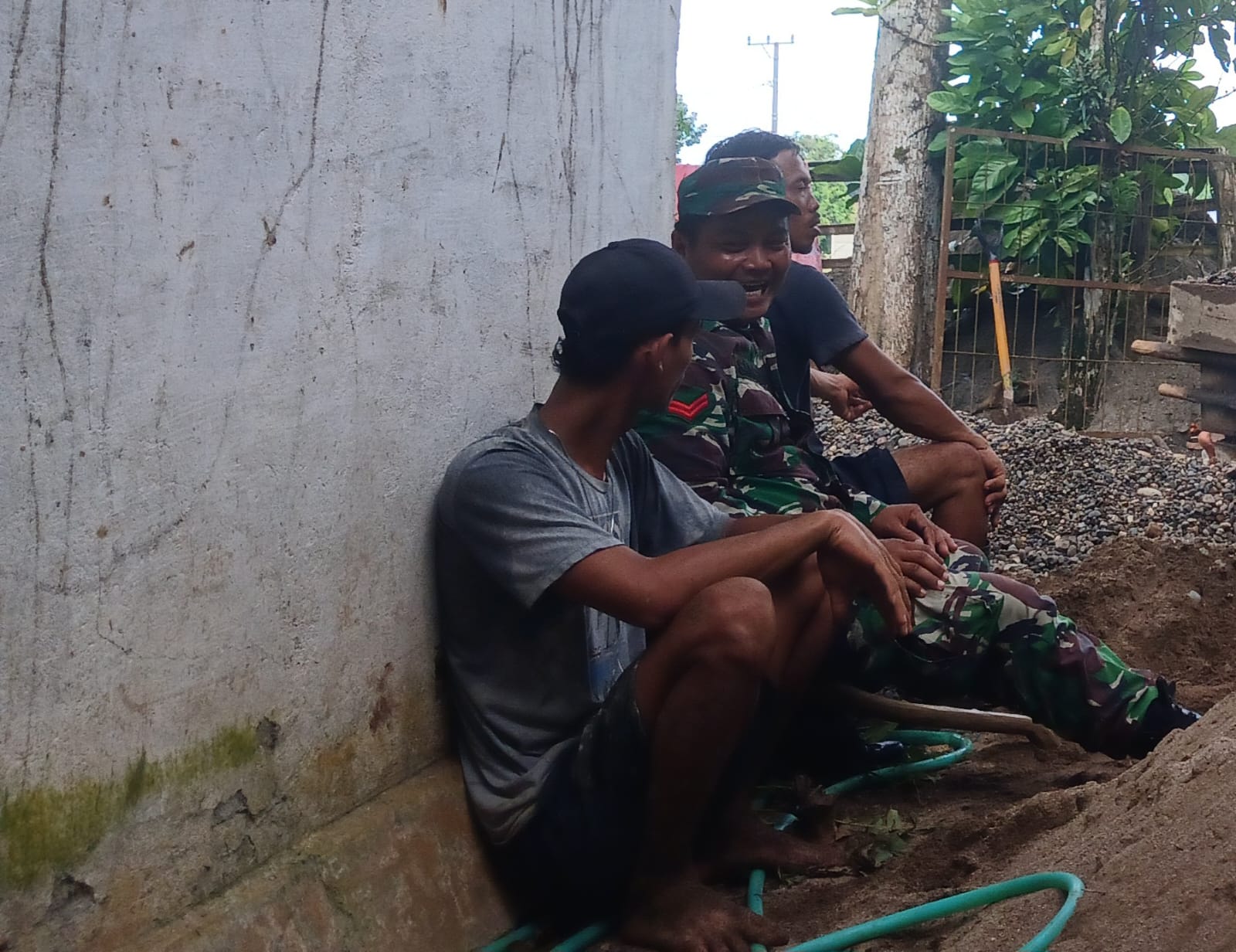 Babinsa melaksanakan komsos santai bersama warga selain membahas masalah keamanan desa, Babinsa juga mendengarkan cerita-cerita masyarakat.