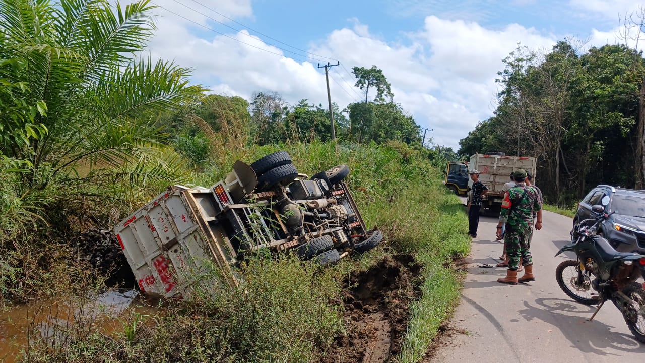 Babinsa koramil 406-02/ rawas ilir membantu evakuasi Kecelakaan tunggal terjadi di Desa tanjung raja, Kecamatan rawas ilir, Kabupaten musi rawas utara pada hari minggu sekitar pukul 11.20 WIB. Sebuah mobil mobil truk bermuatan buah kelapa sawit terbalik setelah menghindari mobil lawan arah yang memakan jalan.