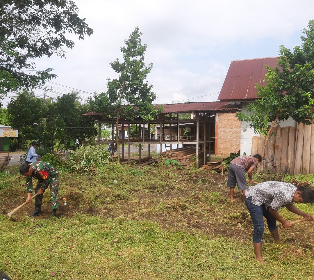 Pada kesempatan tersebut Babinsa Sertu Mahyudi melaksanakan gotong-royong bersama masyarakat membersihkan sampah dan rumput liar di pinggir jalan kantor desa di wilayah binaan, dengan tumbuh nya rumput liar yang tumbuh di kiri dan kanan kantor desa tersebut mendorong Babinsa mengajak masyarakat untuk bergotong royong guna melaksanakan pembersihan rumput dan sampah plastik sehingga nantinya membuat kondisi kantor desa menjadi kelihatan bersih dan terpelihara.