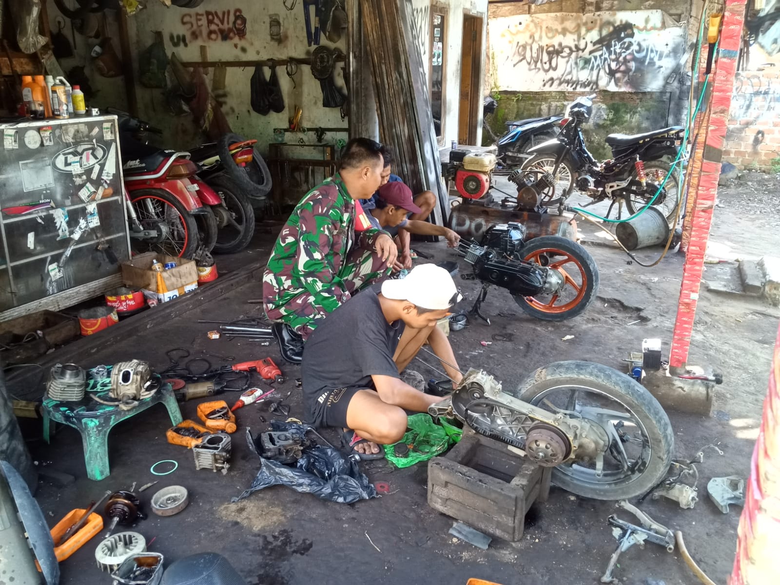Komsos di Bengkel Motor, Babinsa Berikan Motivasi kepada pemilik bengkel di wilayah desa binaan