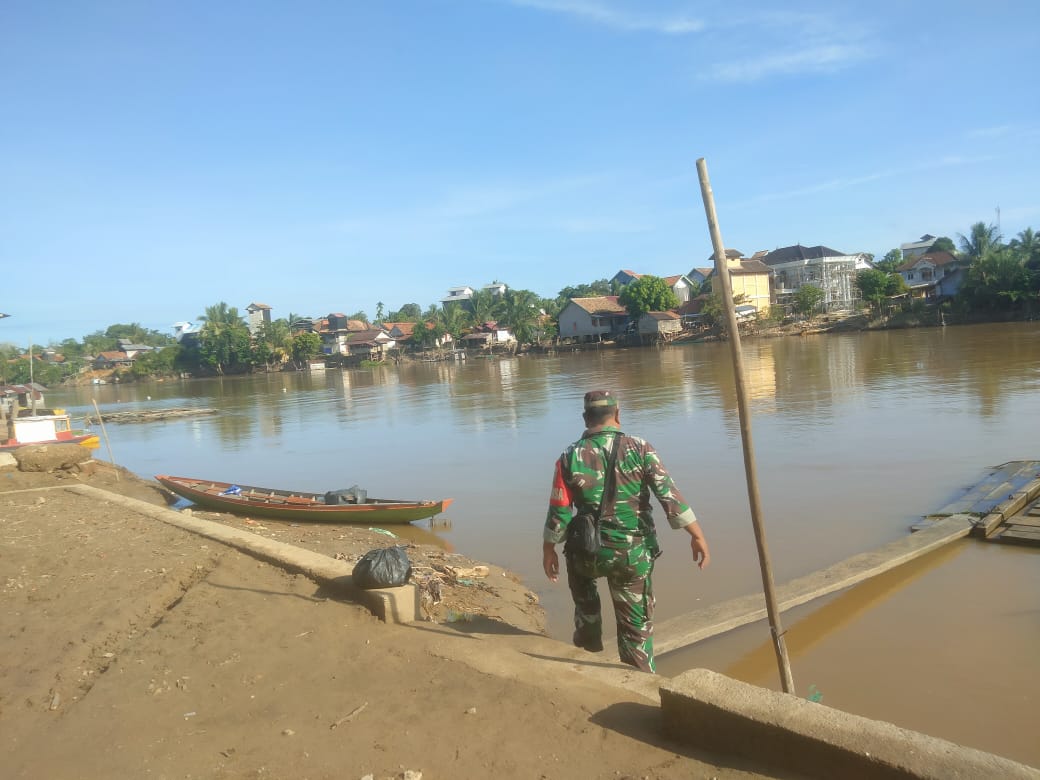 Dengan melaksanakan patroli sekitar tepian sungai dan tempat rawan banjir, Babinsa mengecek debit air di desa binaan Kecamatan Rawas ilir.