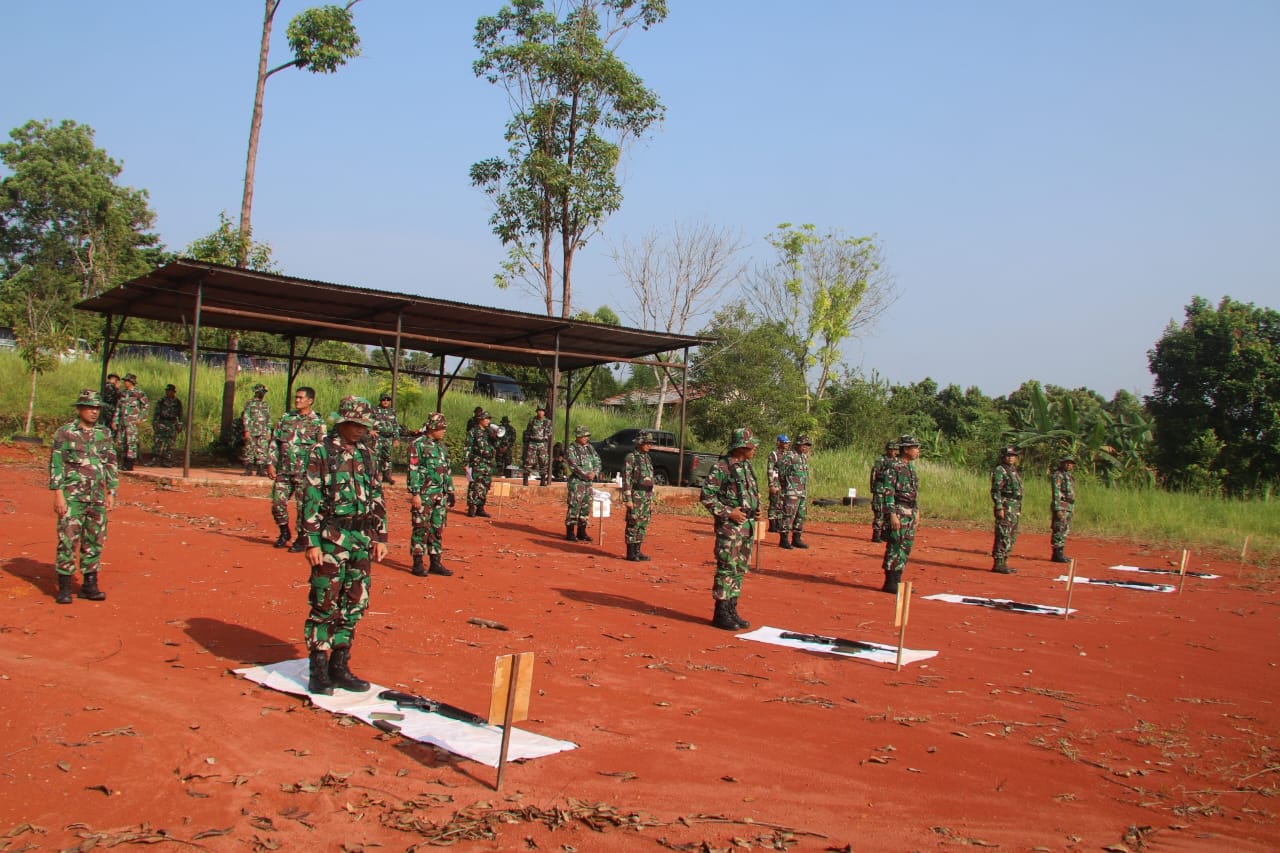 Danramil 406-11/Nibung Kapten Czi Jati Priyono selaku koordinator lapangan menyampaikan latihan menembak ini bertujuan untuk memelihara dan meningkatkan kemampuan menembak senjata ringan dari setiap prajurit sesuai TOP atau DSPP.