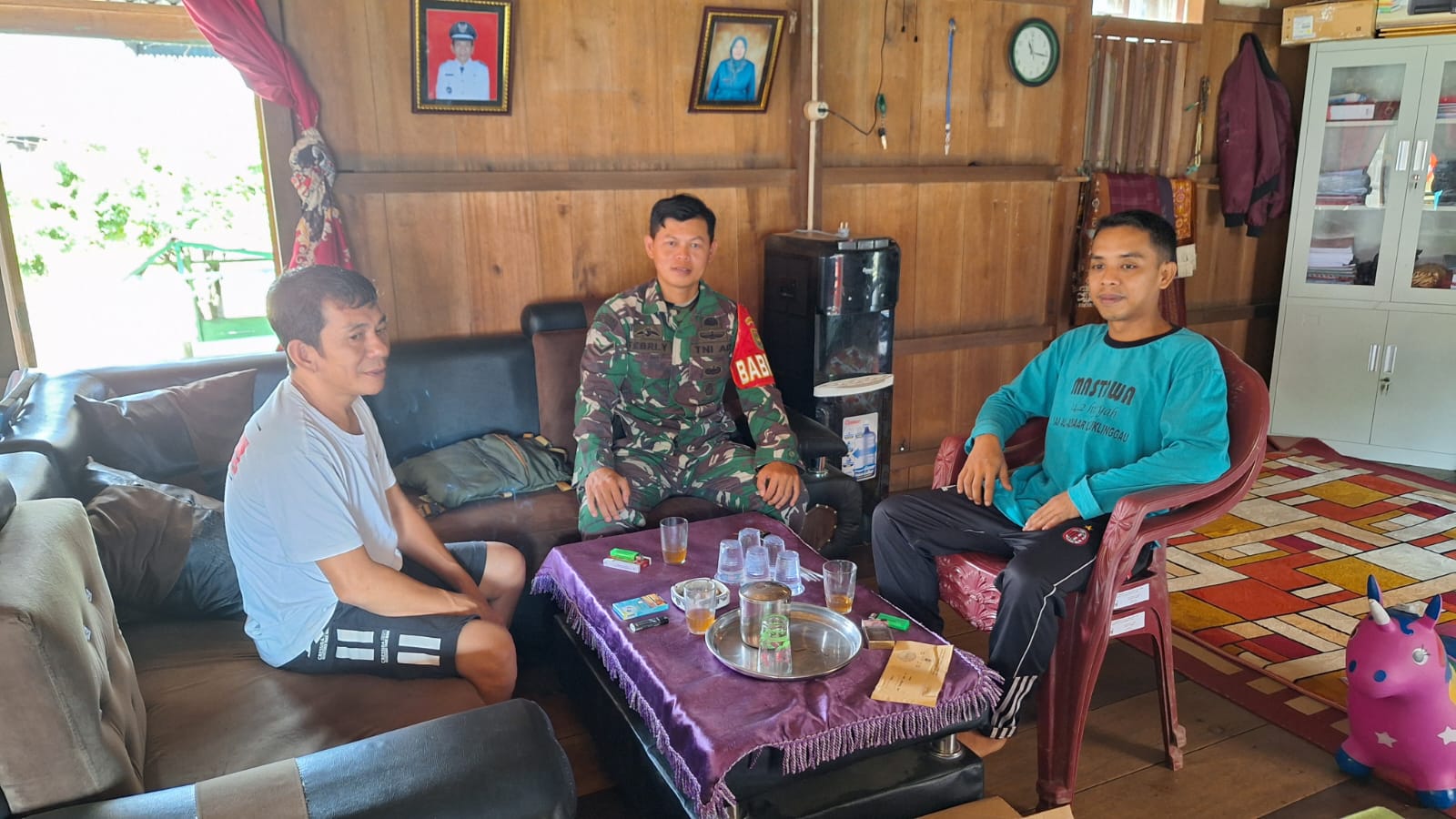 Babinsa Koramil 406-03/rupit Sertu Yuda dan Serda Febri yanto, dalam menjalin rasa keakraban serta kebersamaan yang baik dengan warga Babinsa melaksanakan kegiatan rutin komsos di desa binaan kec rupit , musi rawas utara.