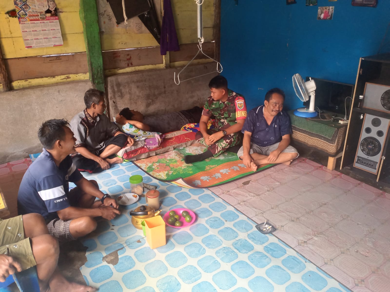Babinsa melaksanakan kegiatan komsos dan silaturahmi ke masyarkat Desa Bahas Tentang Keamanan Dan ketertiban di wilayah desa binaan.