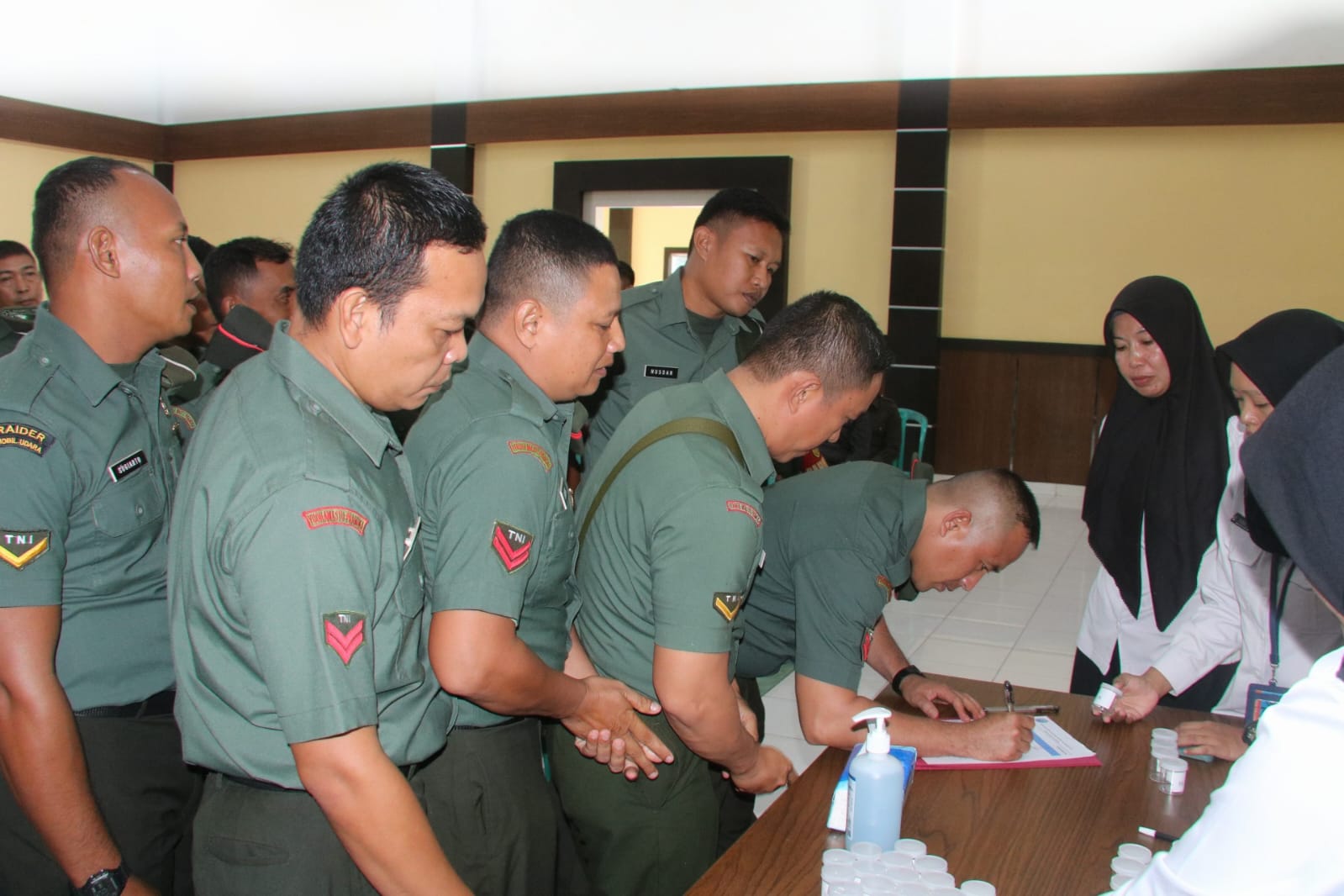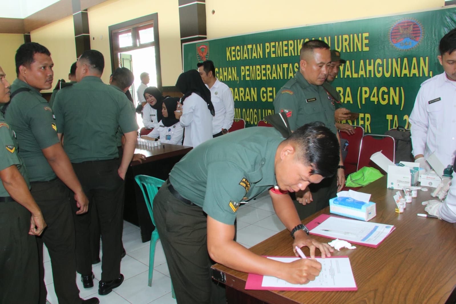 “Pada hari ini kita personil TNI Kodim 0406/Lubuk Linggau mendapatkan sosialisasi bahaya narkoba dari BNN , selain itu juga dilakukan cek urine dengan tujuan mencegah adanya pengguna narkoba, penyalahgunaan, ataupun sebagai pengedar bagi prajurit TNI Kodim 0406/Lubuk Linggau”, ungkap Kasdim Mayor Inf Nur Sigit Prasetya S.I.P.,M.Sc.