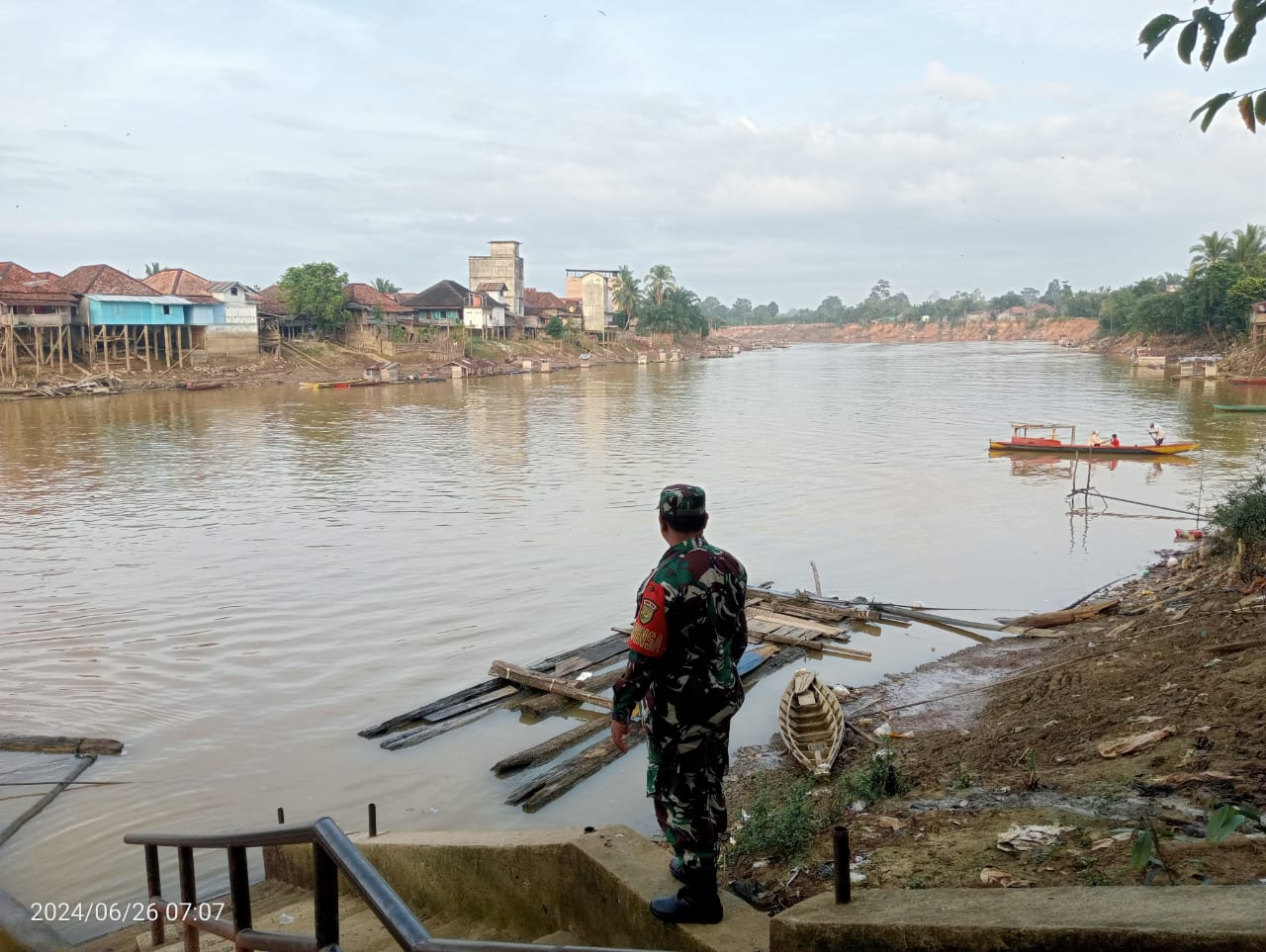 Dengan melaksanakan patroli sekitar tepian sungai dan tempat rawan banjir, Babinsa mengecek debit air di desa binaan Kecamatan Rawas ilir.