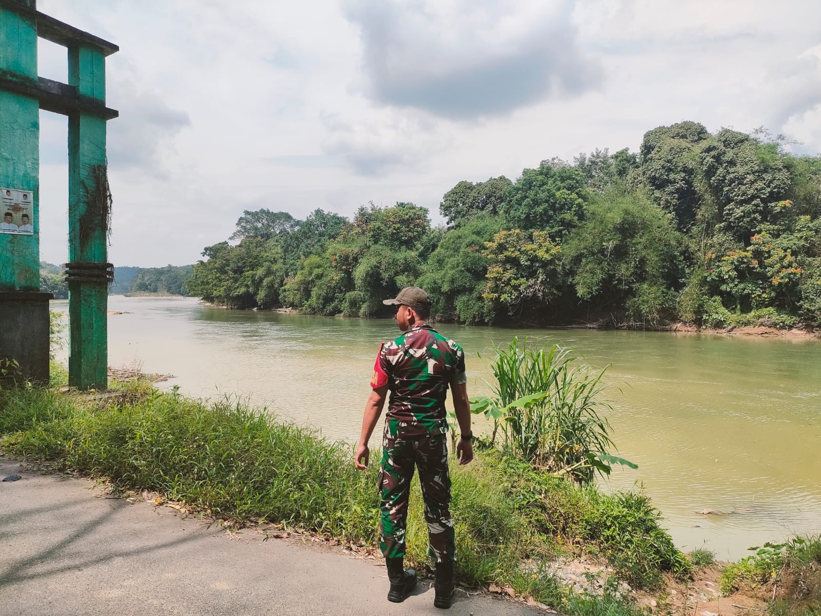 Kegiatan rutin Babinsa koramil 406-01/rawas ulu melaksanakan pemantauan debit air, hasil pengecekan debit air masih batas normal dan aman, kec rawas ulu kab musi rawas utara.