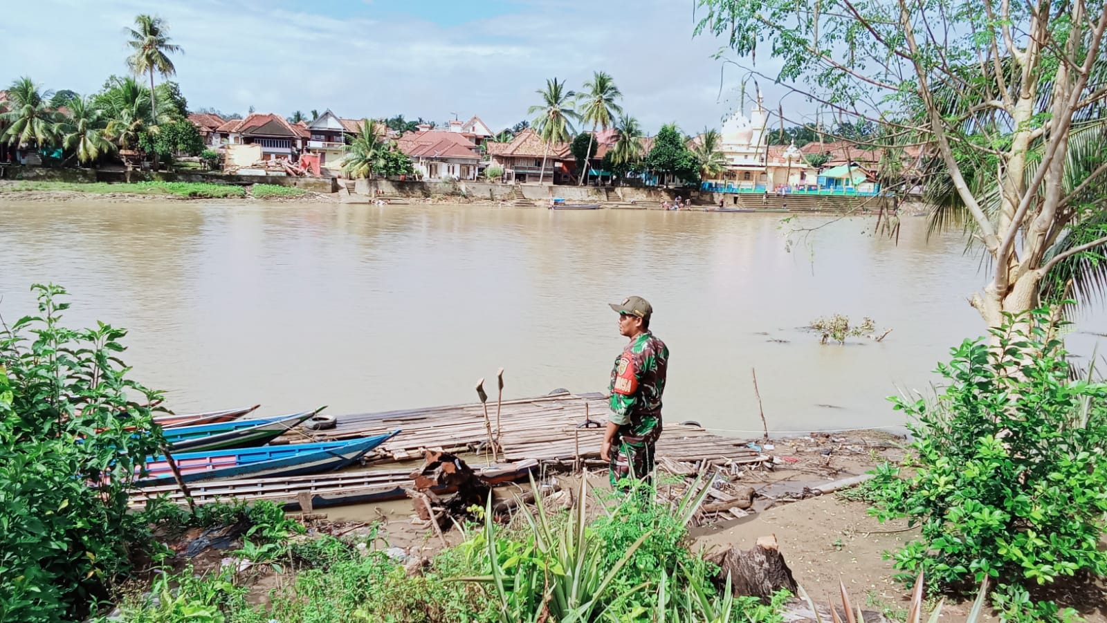 Dengan melaksanakan patroli sekitar tepian sungai dan tempat rawan banjir, Babinsa mengecek debit air di desa binaan Kecamatan rawas ulu.