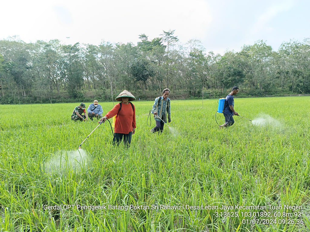 Babinsa Koramil 406-05/Muara Kelingi Serda Aferi Yansah menjelaskan dengan mendengar hama wereng dan lembing di Desa Leban Jaya berkoordinasi dengan pihak PPL dan dinas pertanian untuk mengambil kebijakan untuk memberikan bantuan obat herbisida pembasmi hama wereng dengan tujuan agar para petani tidak mengalami kerugian dan gagal panen.