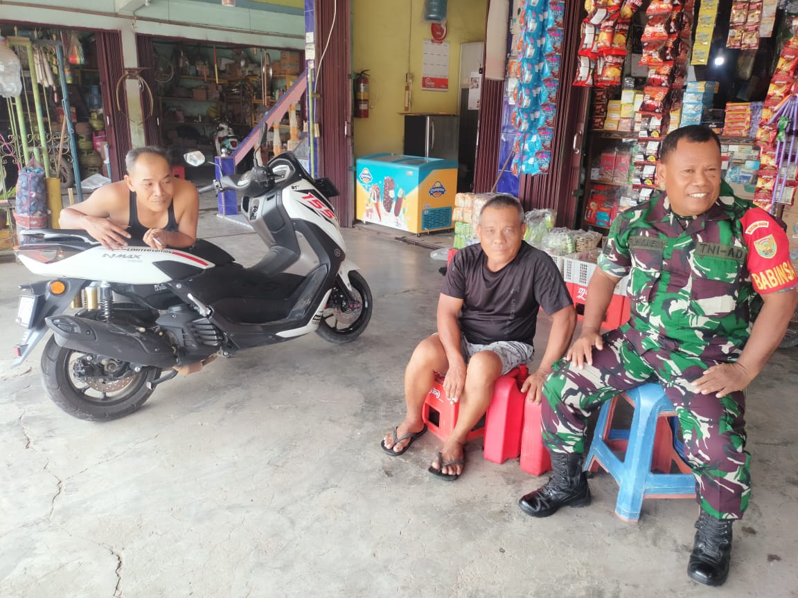 Serka Ruslan Babinsa Koramil 406-04/Muara Lakitan selalu memelihara keharmonisan dan kedekatan dengan warga terkait di wilayah dengan bersilaturahmi di warung milik Warga di Desa Megang sakti lll, Kecamatan Megang sakti, kabupaten Musi Rawas. Kamis (04/07/2024).