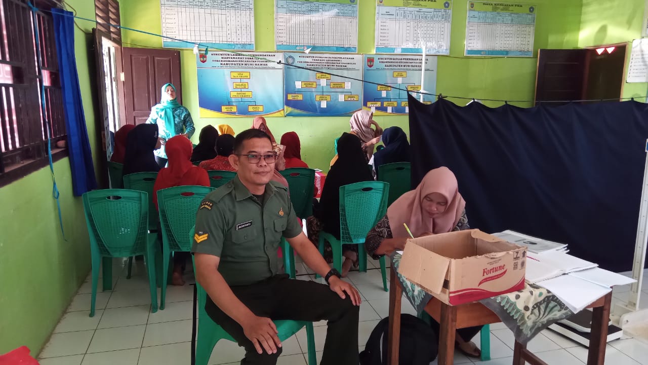 Bintara Pembina Desa (Babinsa) Koramil 406-06/Tugumulyo Kodim 0406/Lubuklinggau melaksanakan kegiatan pendampingan Pelayanan Posyandu di Desa Sidoharjo Kecamatan Tugumulyo Kabupaten Musi Rawas. Senin (08/07/2024).