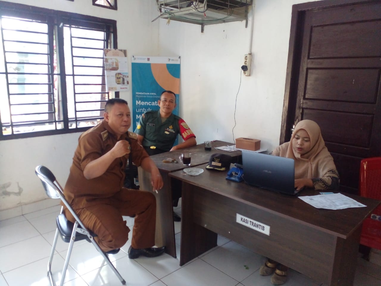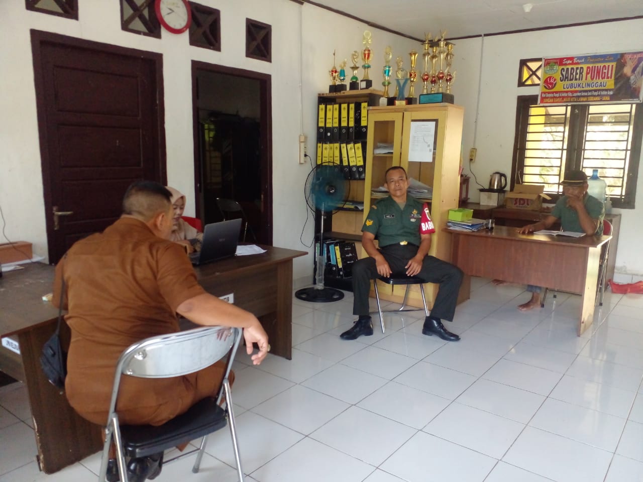 Babinsa Koramil 406-08/Lubuklinggau Serka Yudi Santoso Melaksanakan Komsos Bersama Pak Lurah , Di Kantor Lurah, kelurahan Belalau II Kecamatan Lubuklinggau Utara II. Kota Lubuklinggau