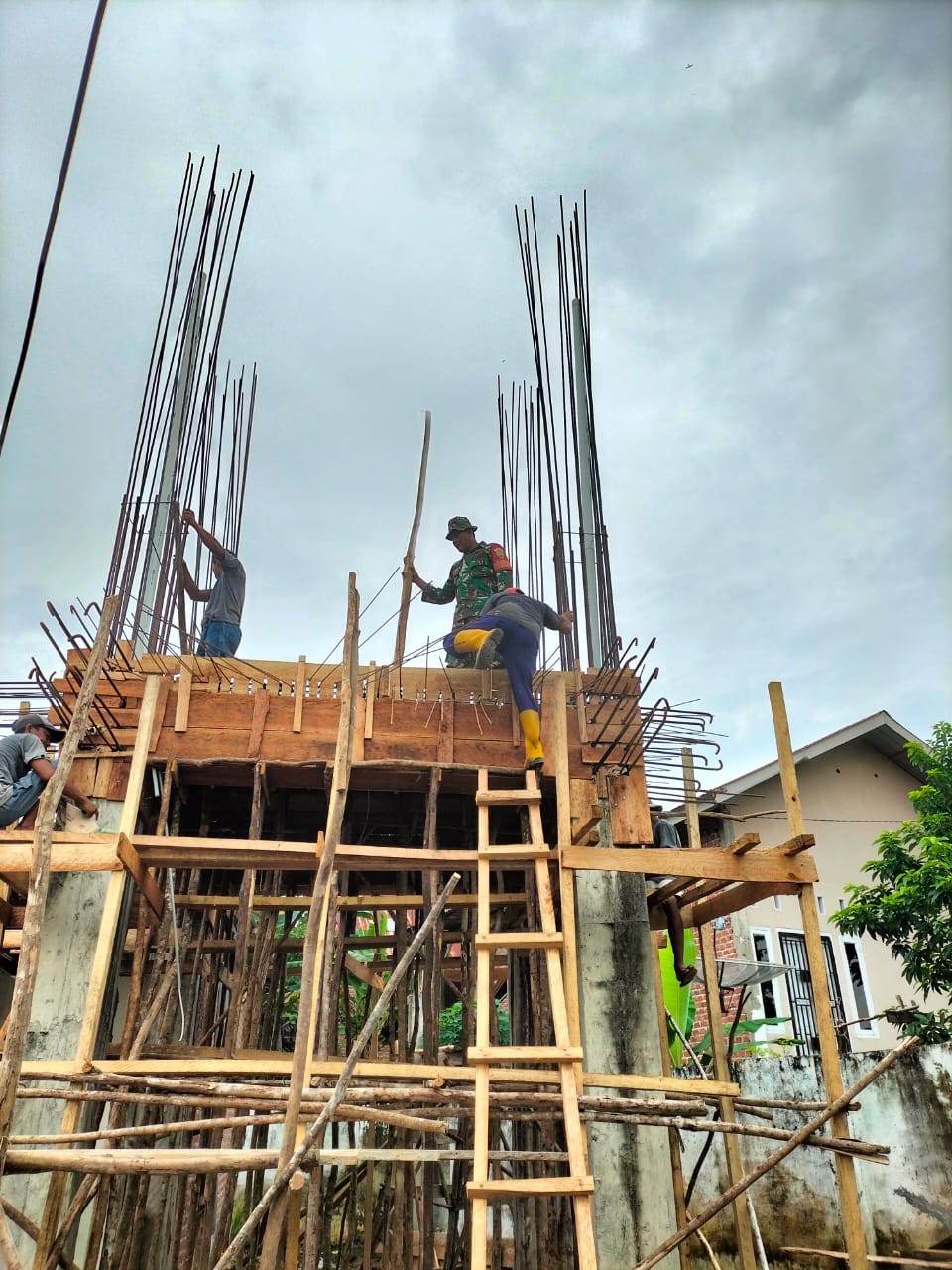 Dengan bermodalkan alat seadanya warga di bantu Babinsa Koramil 406-05/Muara Kelingi itu bahu membahu bergotong royong membangun menara masjid Al Amin,kebersamaan nampak di lakukan warga dan Babinsa,meski bergotong royong di bawah terik matahari,tidak nampak rasa lelah dari wajah mereka.