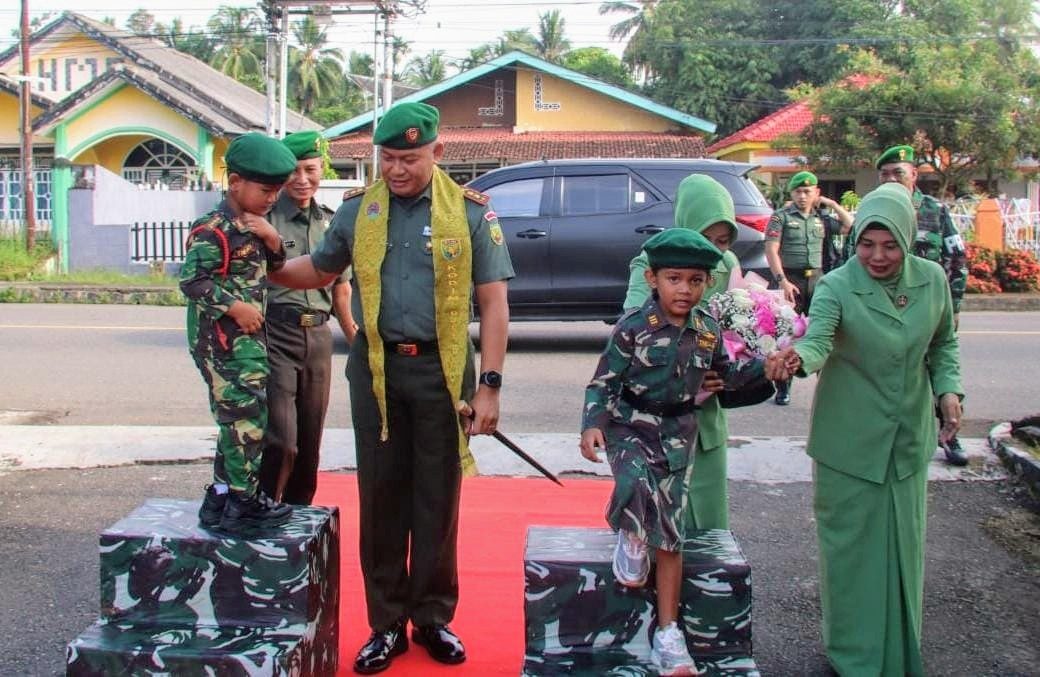 Penyambutan Komandan Kodim 0406/Lubuk Linggau dan Ketua Persit KCK Cabang XVII Dim 0406 Lubuk Linggau diawali dengan penghormatan dan pengalungan selendang oleh anak TK Kartika Jaya kepada Komandan Kodim Letkol Inf Arie Prasatyo Widyo Broto S.E dan pemberian buket bunga kepada Ketua Persit KCK Cabang XVII Ny Indah Arie Prasatyo Widyo Broto.