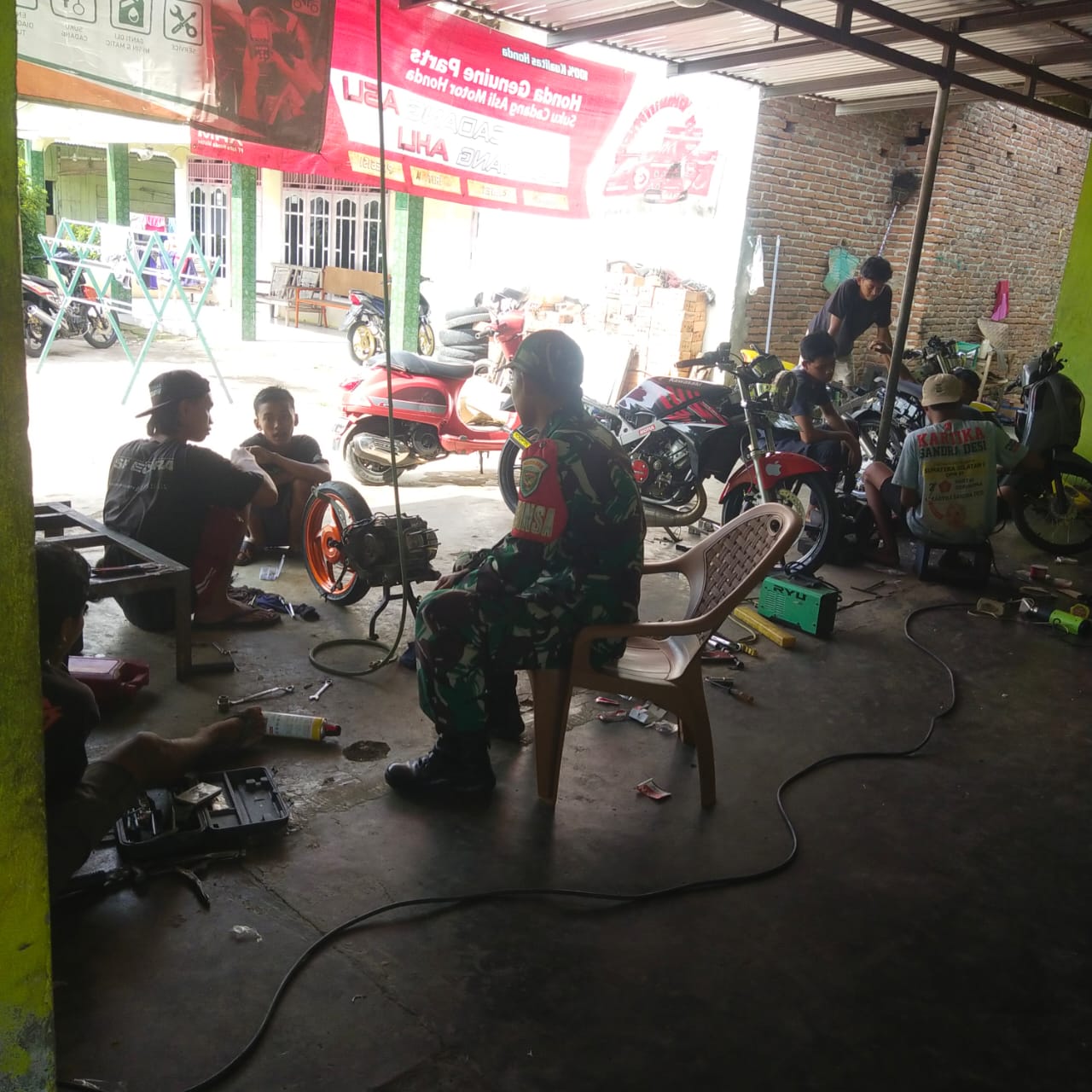 Kegiatan ini dilakukan Babinsa dalam rangka meningkatkan kemanunggalan TNI dengan rakyat, memberikan motivasi kepada pemilik bengkel,selain itu juga dalam upaya Babinsa lebih dekat dengan warga binaannya.