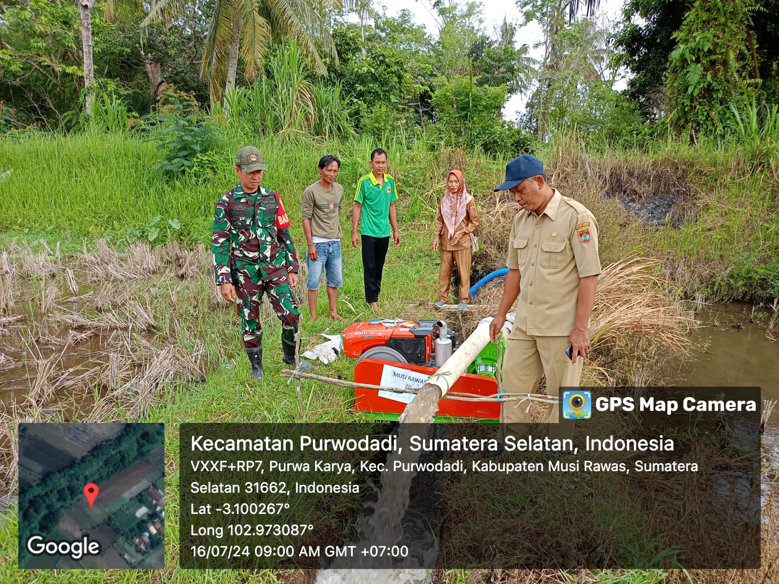 Uji coba pengoperasian pompa air dilakukan berlokasi di Desa purwakarya, Kecamatan Purwodadi, Kabupaten Musi Rawas. Selasa, (16/07/2024).