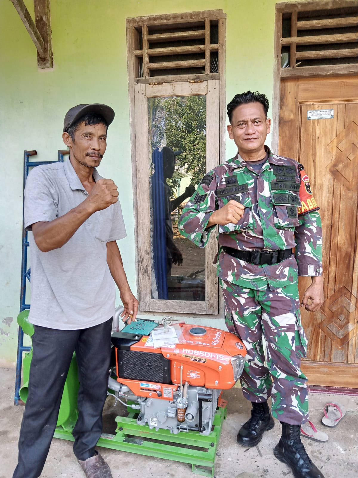 Babinsa Serma Zulkarnaen menjelaskan, bantuan berupa mesin pompa air ini merupakan bantuan pengadaan sarana pertanian dari Direktorat jenderal prasarana dan sarana pertanian. Pendampingan yang dilakukan dalam rangka mendukung dan mensukseskan program pemerintah di sektor pertanian