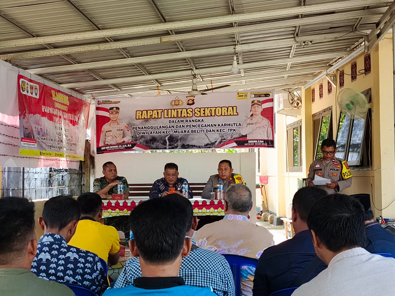 Camat Muara Beliti bapak Supriyadi,M.Pd.menyampaikan Beberapa hal yaitu Masing Desa harus membuat Baliho tentang sosialisasi dan peringatan atau anjuran Kepada masyarakat tentang larangan, Dan sanksi hukum bagi pelaku Karlahut
