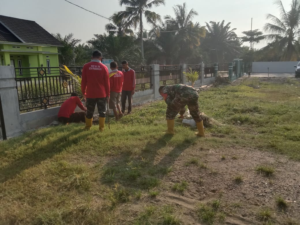 Semangat gotong royong, Babinsa bersama Warga Bersihkan Lingkungan Desa