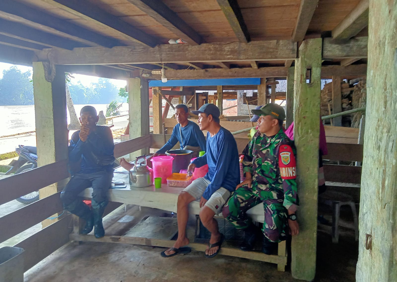 Babinsa Koramil 406-01/rawas ulu serda Bayu anggara, dalam menjalin rasa keakraban serta kebersamaan yang baik dengan warga Babinsa melaksanakan kegiatan rutin komsos di Desa Lesung batu kec rawas ulu, musi rawas utara.