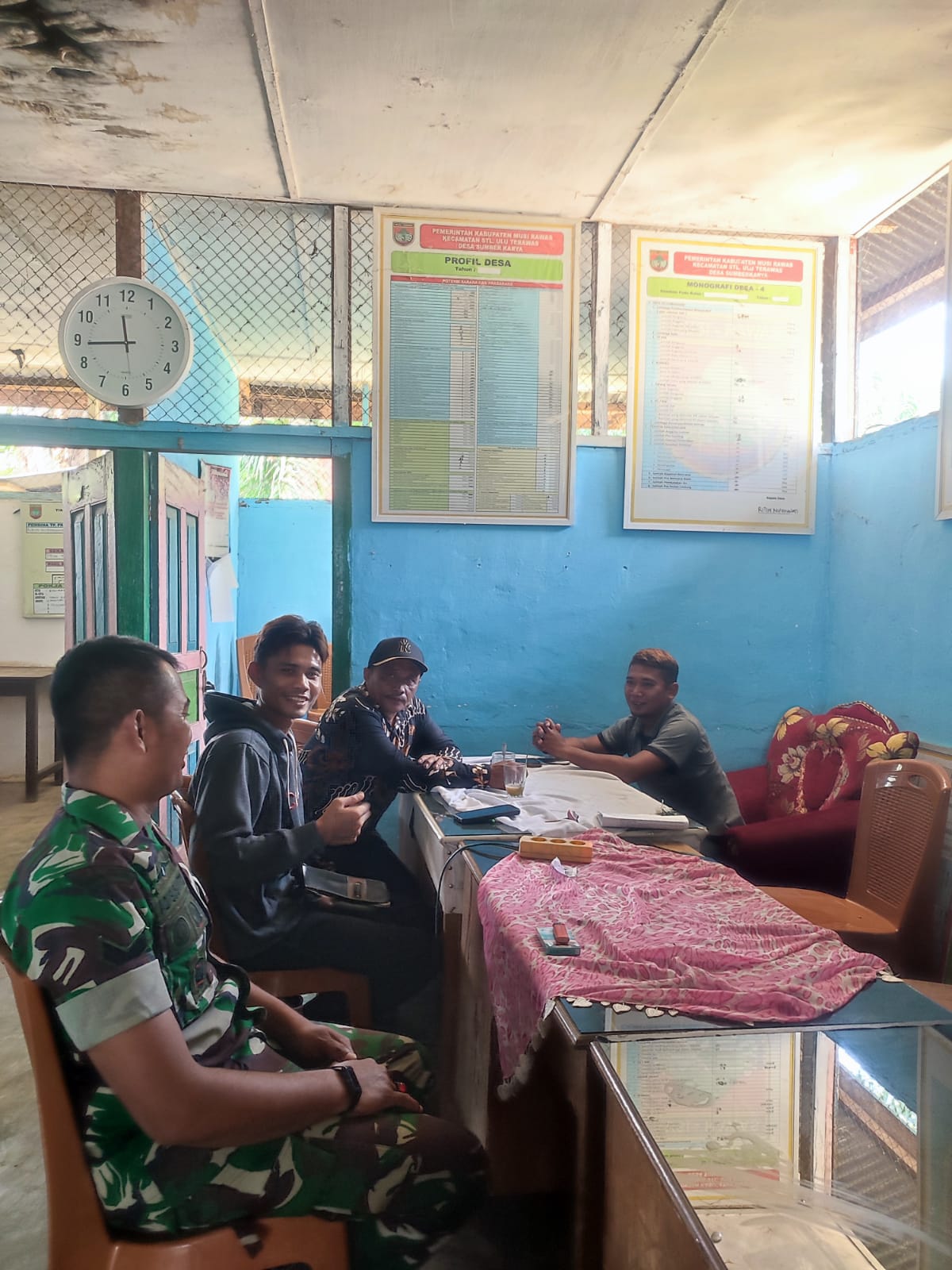 Dalam Komsosnya Sertu Adi Susanto Selalu menghimbau Dan Sosialisasi Bersama Perangkat Desa Tetap Menjaga Keamanan Di desa Apa bila ada kejadian yang cepat segera laporan .