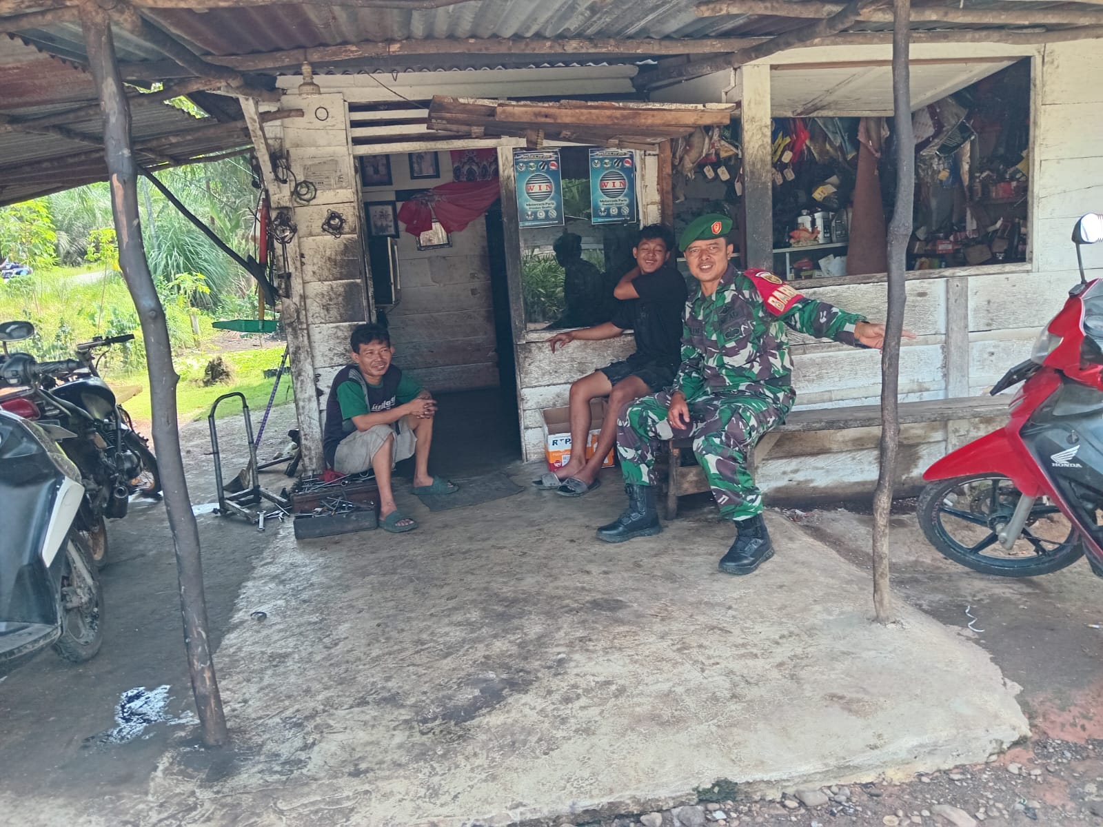 Tugas Rutin Babinsa. Serda Syukra Dede Babinsa Koramil 406-09/Terawas Melaksanakan Komsos Di Wilayah Binaan.