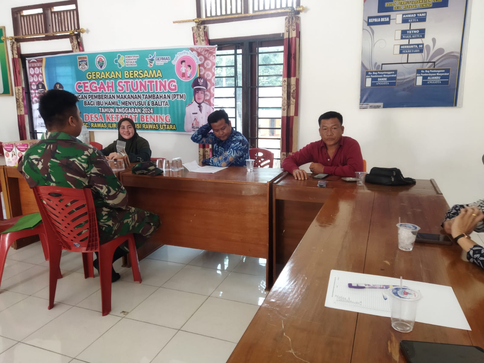 Guna menjalin kemanunggalan TNI dengan Rakyat, Babinsa Koramil 406-02/rawas ilir Sertu Okta Hardiansyah, Melaksanakan Komsos bersama Perangkat desa dan masyarakat desa yang berada di Desa Ketapang Bening kec rawas ilir, kabupaten Musi rawas utara