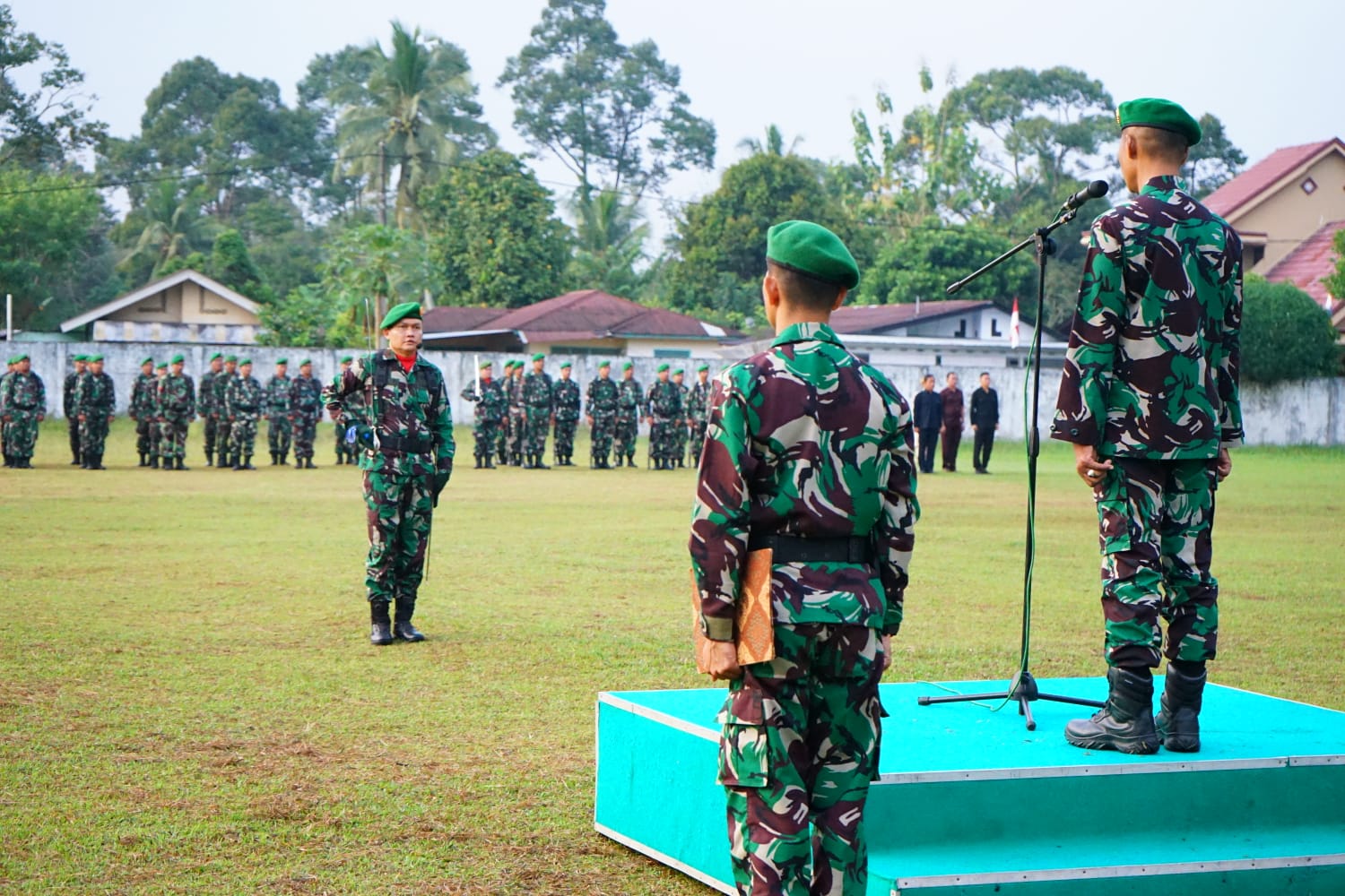 Bertindak sebagai Inspektur Upacara kali ini adalah Perwira Staf Kodim 0406/Lubuk Linggau Mayor Inf Nur Sigit Prasetya S.I.P.,M.Sc sedangkan Komandan Upacara Danramil 406-04/Muara Lakitan Lettu Inf Budi Raharjo.