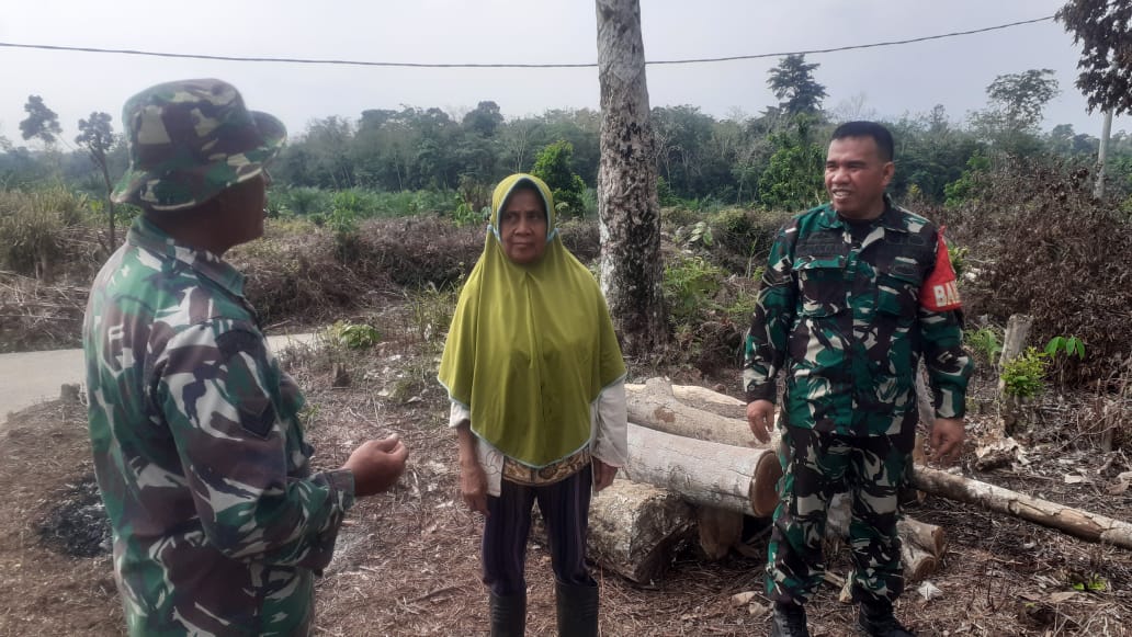 Babinsa Koramil 406-09/Terawas Melaksanakan Komsos Bersama Warga Dan Menghimbau Larangan Karhutla.