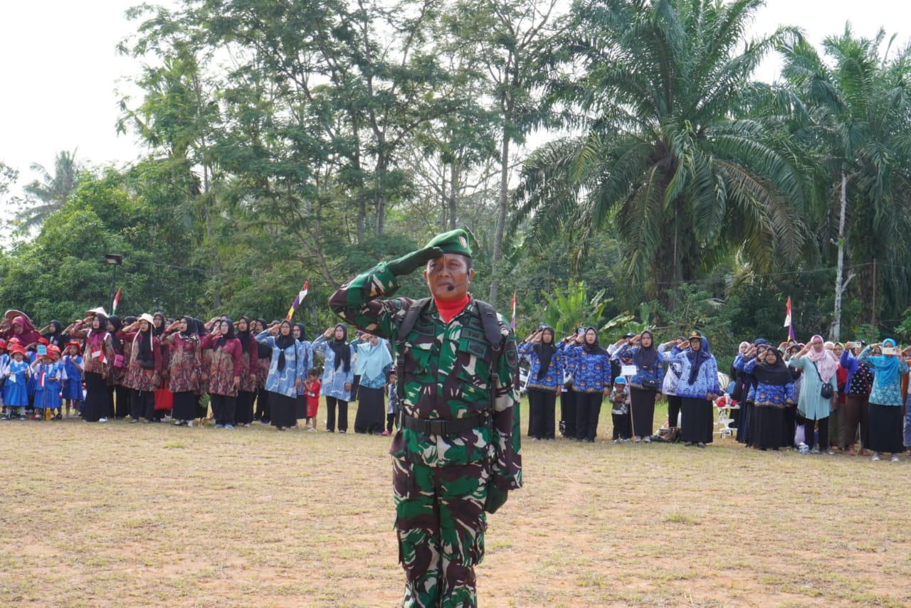 Sertu Rudianto melaksanakan kegiatan upacara upacara bendera memperingati Hari kemerdekaan RI ke 79 tahun 2024 bertindak sebagai Komandan upacara di desa Mangan Jaya kecamatan muara Kelingi kab Musi Rawas.
