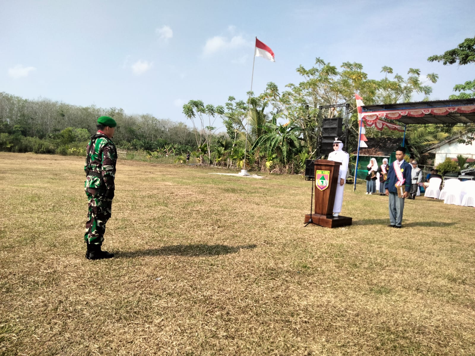 Seperti pada upacara di wilayah Kecamatan Muara Kelingi Serma Sutrisno, Serda Samer, Serda Arian melaksanakan kegiatan upacara bendera memperingati HUT RI ke 79 tahun 2024 di Kecamatan Muara Kelingi Kabupaten Musi Rawas.