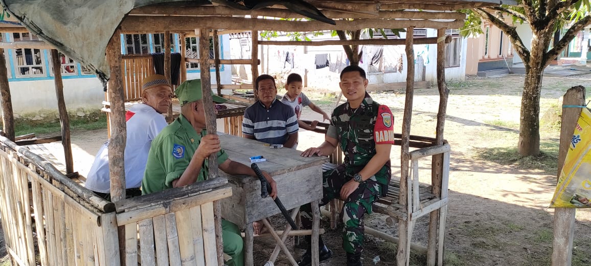Babinsa Koramil 406-03/Rupit Serda Budi, dalam menjalin rasa keakraban serta kebersamaan yang baik dengan warga Babinsa melaksanakan kegiatan rutin komsos di Desa Baru Gajah baru kec rawas ilir, musi rawas utara.