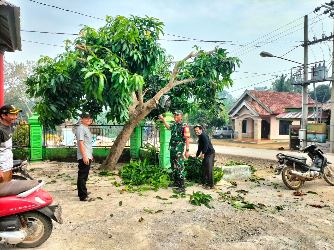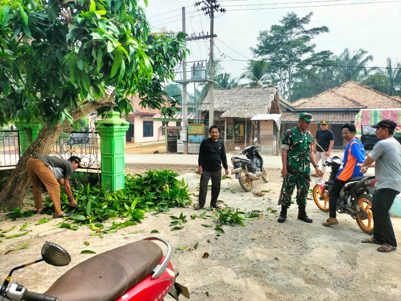 Lensa Garuda- Musi Rawas. Wujudkan Lingkungan Kantor Desa lebih kelihatan Bersih dan rapi Babinsa Koramil 406-05/Muara Kelingi Jajaran Kodim 0406 Lubuk Linggau yaitu Peltu Rohmadani bersama perangkat desa melakukan pembersihan lingkungan Kantor Desa Tugu Sempurna Kecamatan Muara Kelingi, Kabupaten Musi Rawas. Minggu (01/09/2024).