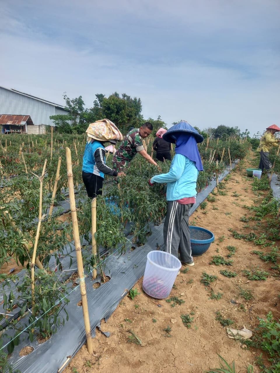 Babinsa Koramil 406-05/Muara Kelingi Bantu Petani Panen Cabai