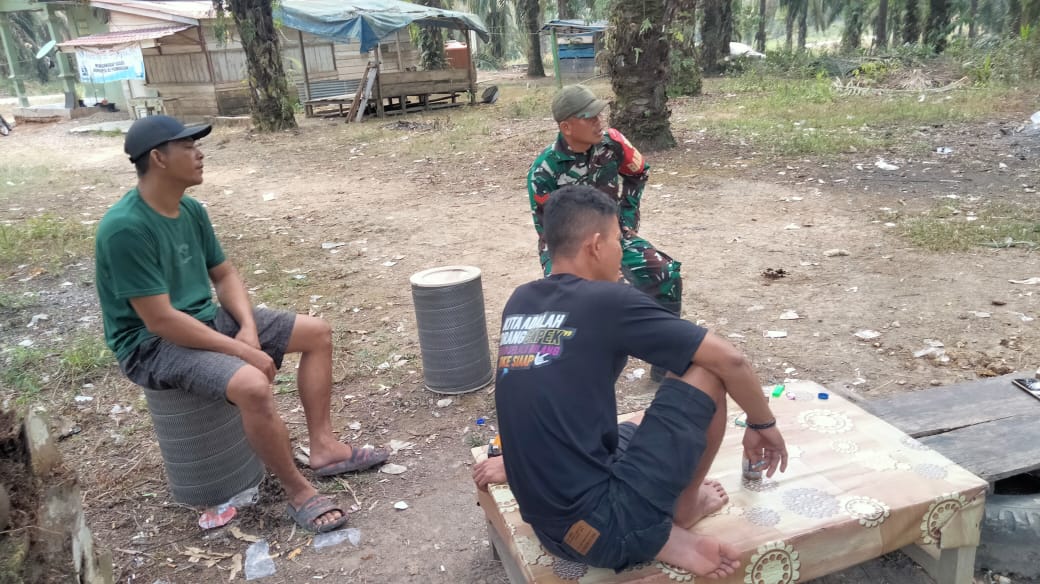 Babinsa komsos dengan warga dan pantau wilayah Binaan