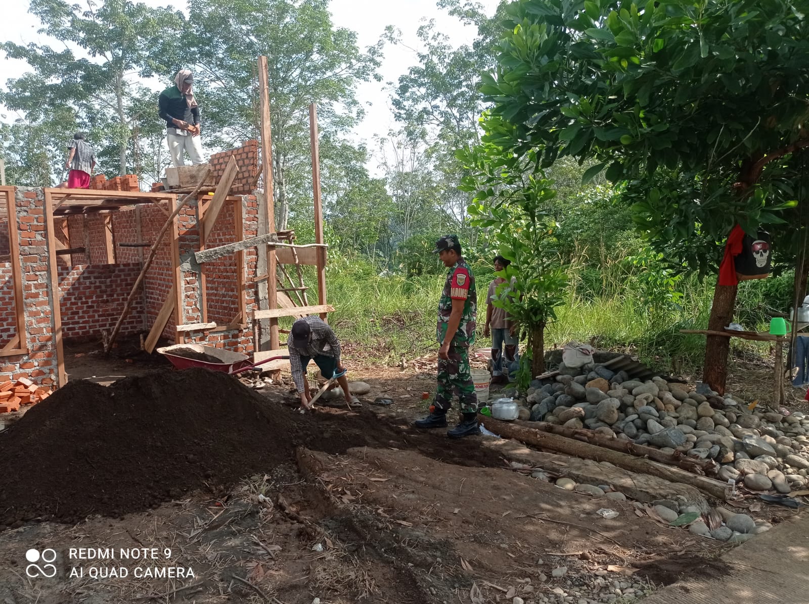 Menghampiri para pekerja bangunan di Desa binaan, Babinsa melaksanakan giat komsos