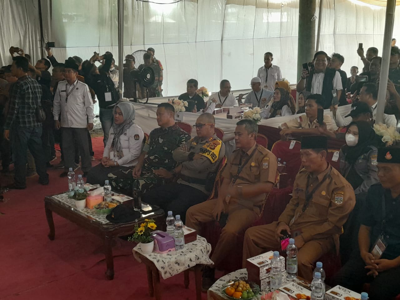 Hadir juga Ketua KPU Heriyanto beserta komisioner, Ketua Bawaslu Muratara, LO, perwakilan partai politik, pejabat Forkopimda Kabupaten Musi Rawas Utara Dandim 0406/Lubuk Linggau Letkol Inf Arie Prasatyo Widyo Broto S.E , Kapolres Muratara, Kajari Kota Lubuk Linggau, Kesbangpol Muratara, serta tamu undangan lainnya turut hadir dalam acara yang diselanggarakan.