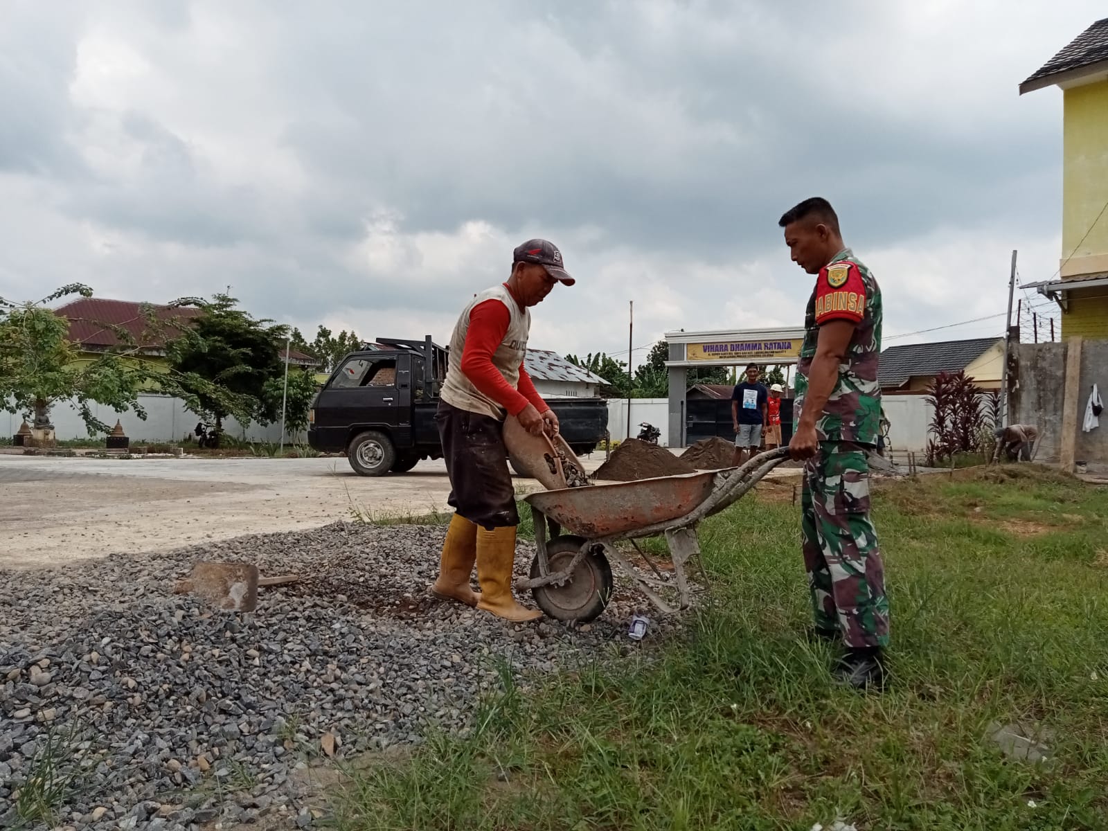 Dalam kegiatan ini, Babinsa juga Meberikan Arahan dengan warga yang terlibat, mendengarkan aspirasi serta memberikan masukan terkait pelaksanaan pekerjaan yang sedang berlangsung. Pembuatan tempat parkir ini sendiri bertujuan untuk meningkatkan kenyamanan umat yang beribadah di Vihara Dahmma Ratana serta masyarakat umum yang datang berkunjung.