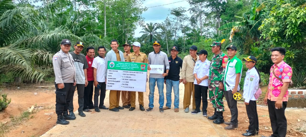 Lensa Garuda- Musi Rawas, Babinsa Koramil 406-05/Muara Kelingi Kodim 0406 Lubuk Linggau Peltu Rohmadani, yang juga merupakan Babinsa Desa Tugu Sempurna, hadiri kegiatan titik 100% pembangunan jalan rabat beton di Desa Tugu Sempurna, Kecamatan Muara Kelingi, Kabupaten Musi Rawas. Rabu (02/09/2024).