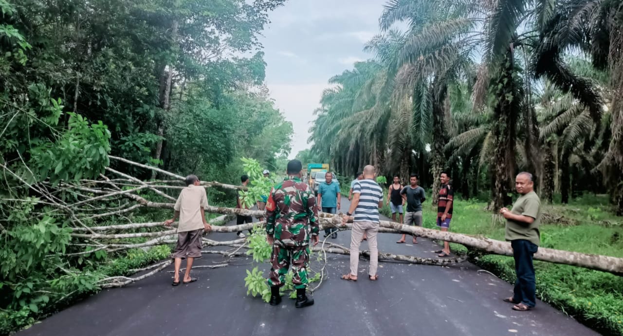 Angin Kencang Tumbangkan Pohon di Jalan, Babinsa Koramil 406-02/Rawas Ilir Bantu Bersihkan Lokasi