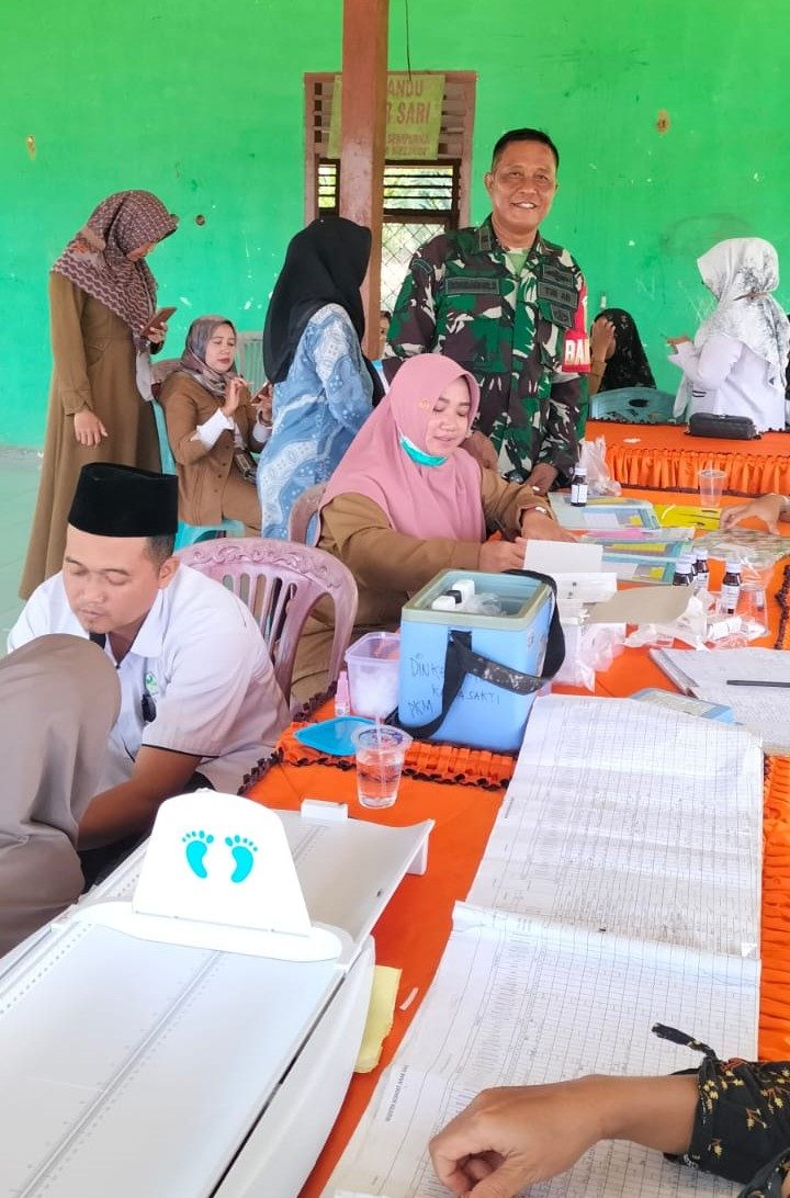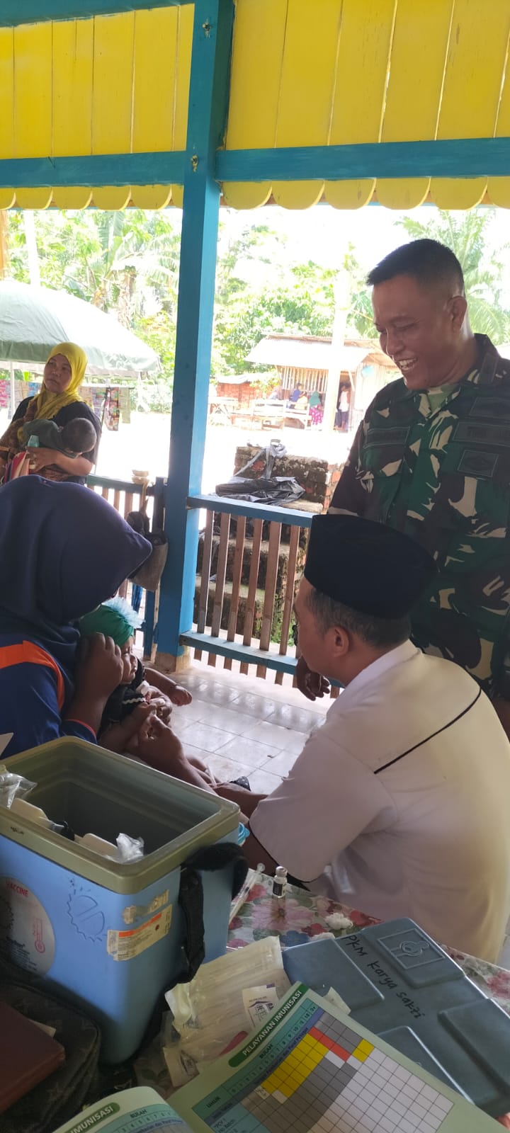 Babinsa Peltu Rohmadani Dampingi Tim Medis Puskesmas Karya Sakti Laksanakan Layanan Kesehatan Posyandu