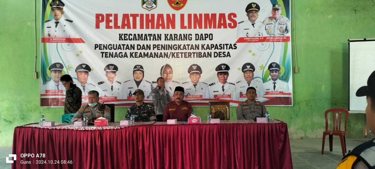 Babinsa Koramil 406-02/Rawas Ilir, Pelda M. Imron, menghadiri acara pembukaan pelatihan Linmas (Perlindungan Masyarakat) di Kecamatan Karang Dapo. Acara tersebut dimulai pukul 09.00 WIB hingga selesai, bertempat di Kantor Kecamatan Karang Dapo.