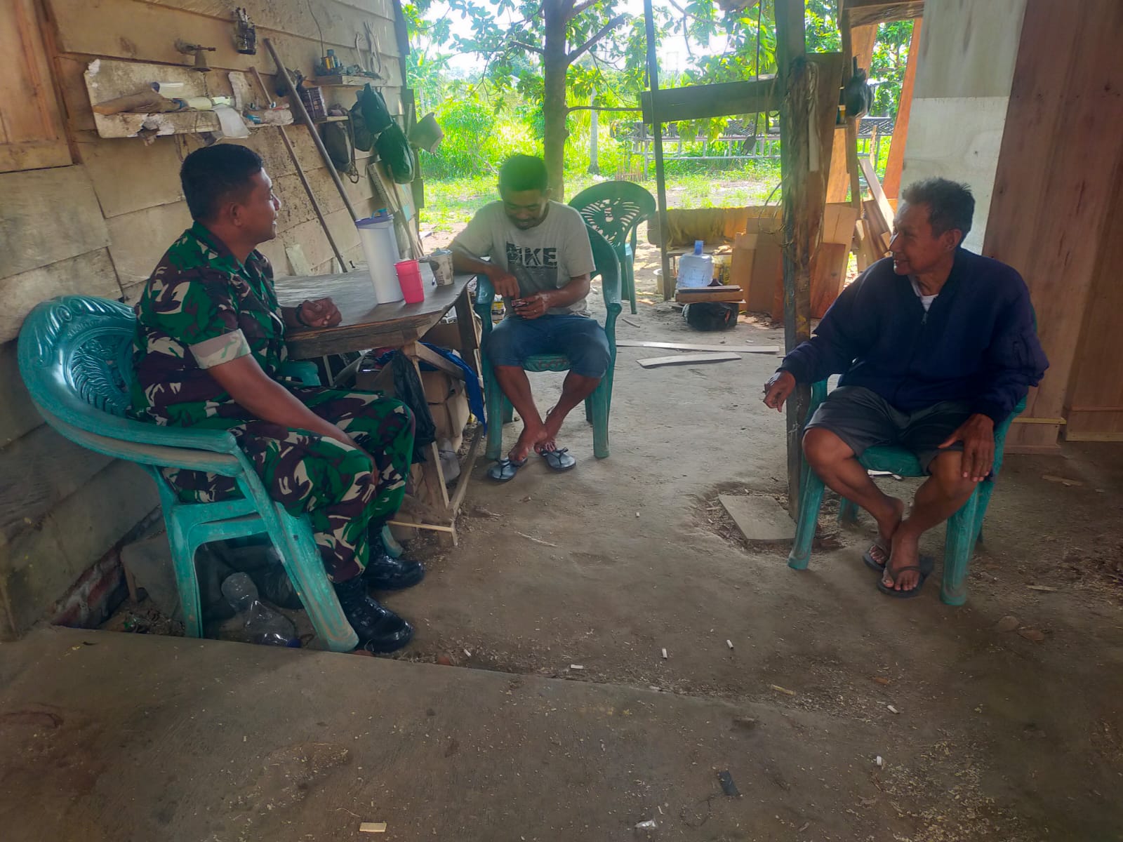 Kegiatan Komsos yang dilakukan bersama warga setempat dalam suasana yang penuh keakraban. Serma Nurhasrifudin berdiskusi mengenai berbagai isu yang berkaitan dengan perkembangan situasi dan kondisi wilayah.