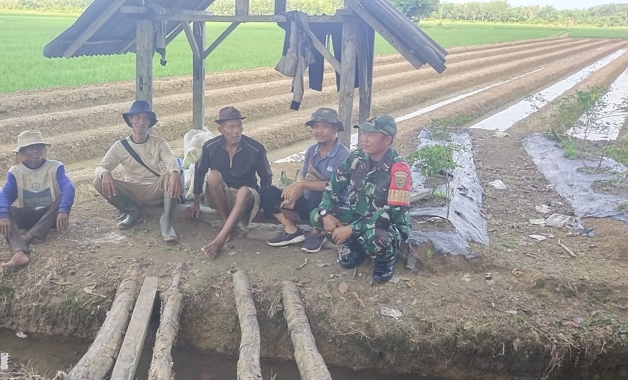 Dalam kesempatan tersebut, Sertu Tugianto mendengarkan aspirasi dan kebutuhan para petani terkait pengelolaan lahan, pupuk, dan tantangan cuaca yang dihadapi. Kehadiran Babinsa juga diharapkan dapat memberikan solusi serta dukungan moril bagi petani dalam menghadapi berbagai kendala di lapangan.