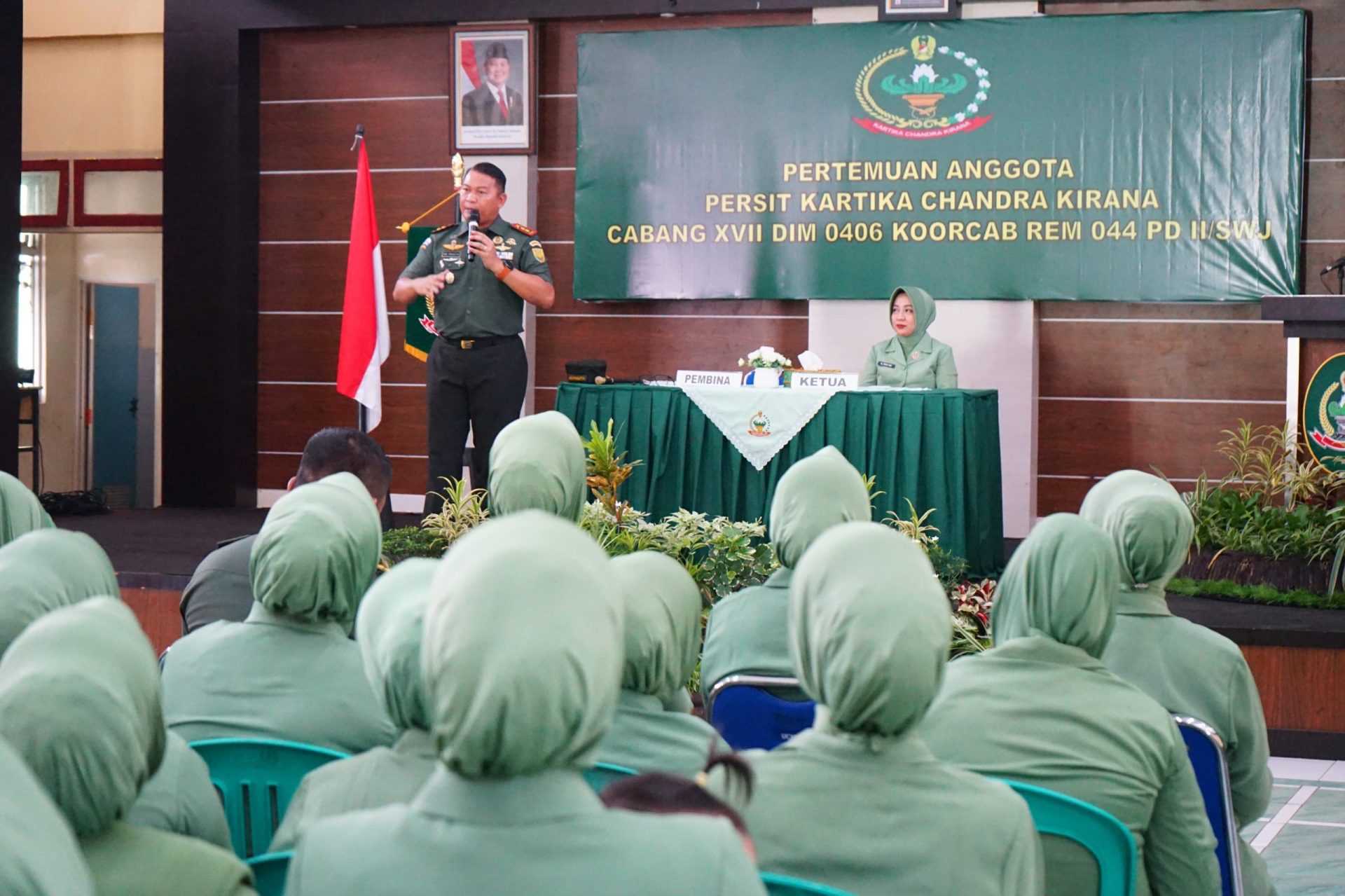 Lensa Garuda- Lubuk Linggau, Komandan Kodim 0406 Lubuk Linggau Letkol Inf Arie Prasatyo Widyo Broto S.E selaku Pembina Persit KCK Cabang XVII dan Ketua Persit KCK Cabang XVII Ny Indah Arie Prasatyo memberikan pengarahan kepada seluruh istri prajurit Kodim 0406 Lubuk Linggau dalam Pertemuan Anggota Persit Kartika Chandra Kirana Cabang XVII Dim 0406 Koorcab Rem 044 PD II /SWJ. Bertempat di Aula Pamungkas Kodim 0406 Lubuk Linggau. Jumat (15/11/2024).