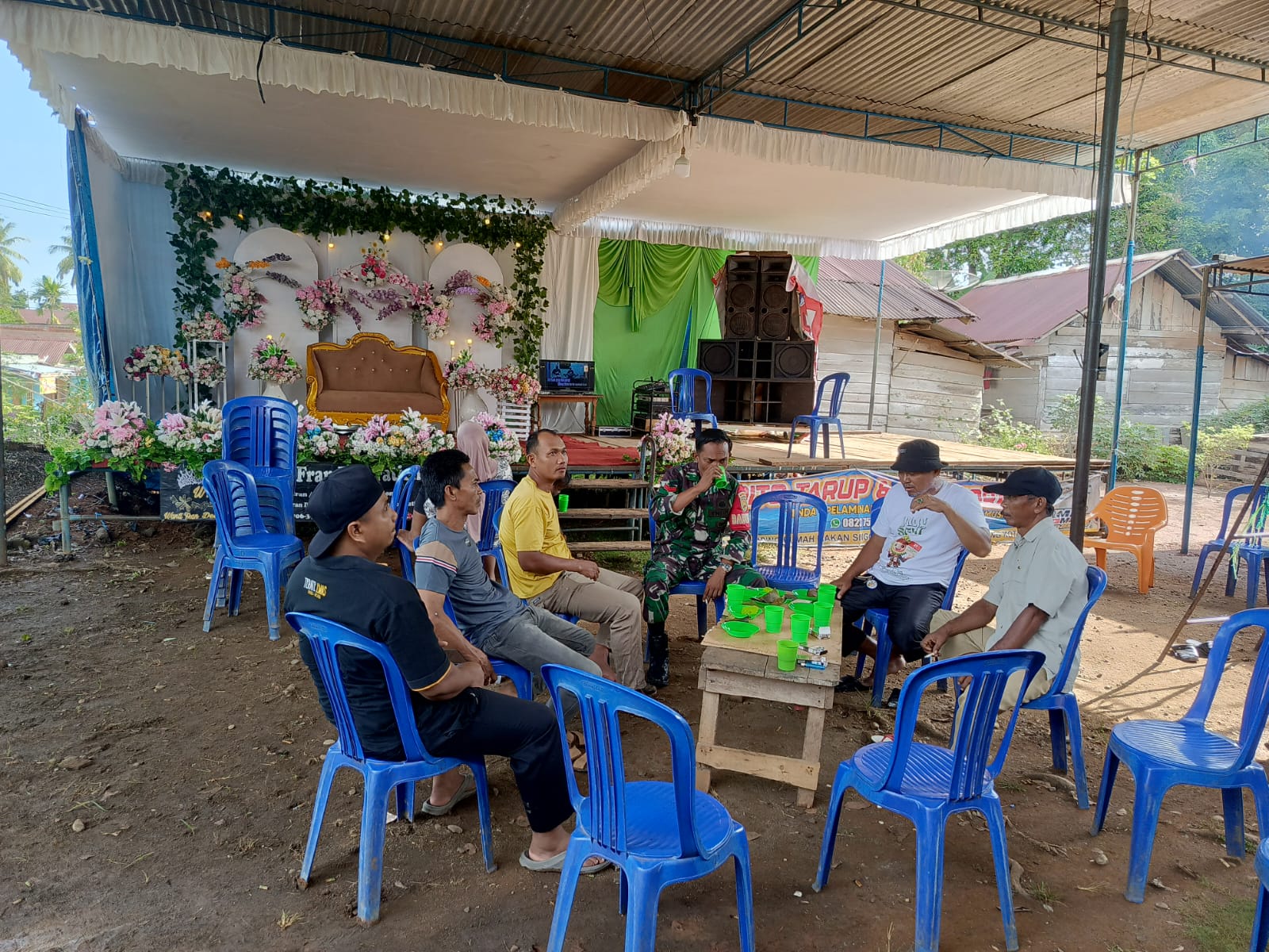 Dalam acara tersebut, selain berbincang-bincang dengan masyarakat, Koptu Siswanto juga memberikan bantuan simbolis untuk mendukung kelancaran acara pernikahan. Kehadiran Babinsa dalam kegiatan hajatan ini diharapkan dapat memperkuat rasa kebersamaan dan gotong-royong di masyarakat.