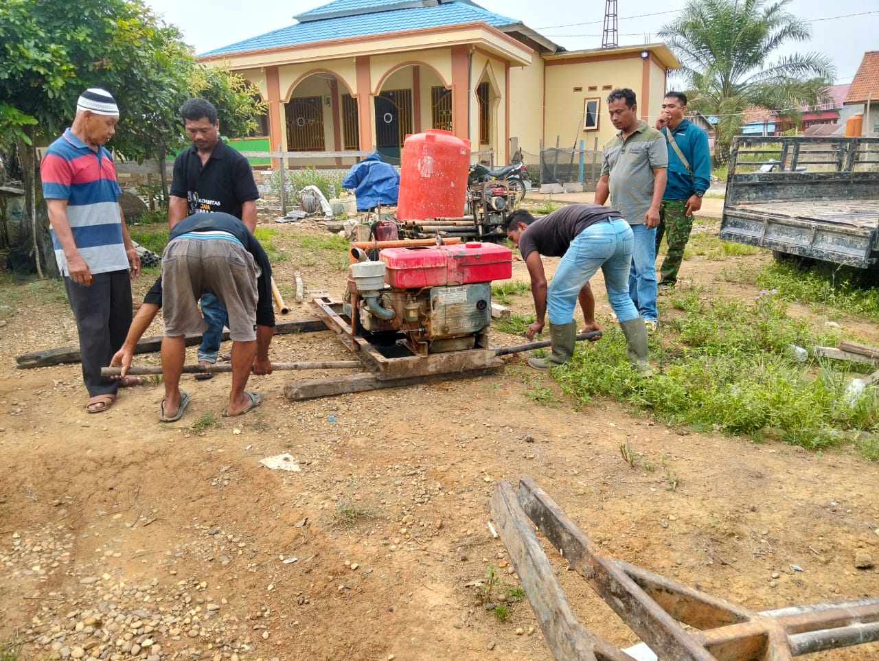Babinsa Desa Beringin Makmur II, Koramil 02/Rawas Ilir, Pelda Endang Permana, melaksanakan kegiatan monitoring dan pendampingan pada pelaksanaan awal pembuatan sumur bor. Kegiatan ini merupakan bagian dari Program Unggulan KASAD Mabesad TNI Manunggal Air yang bertujuan untuk mendukung penyediaan sumber air bersih di seluruh wilayah Indonesia.