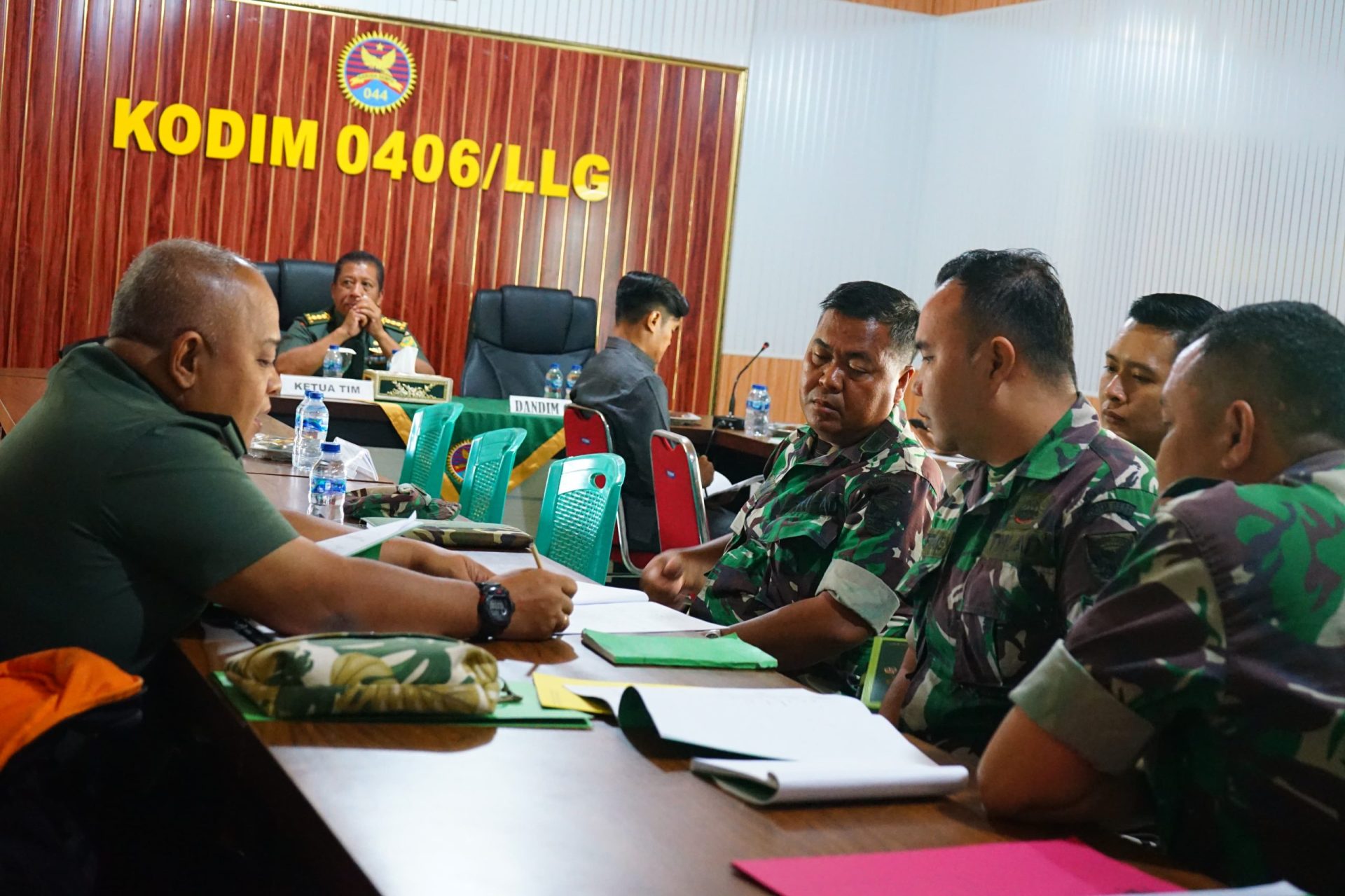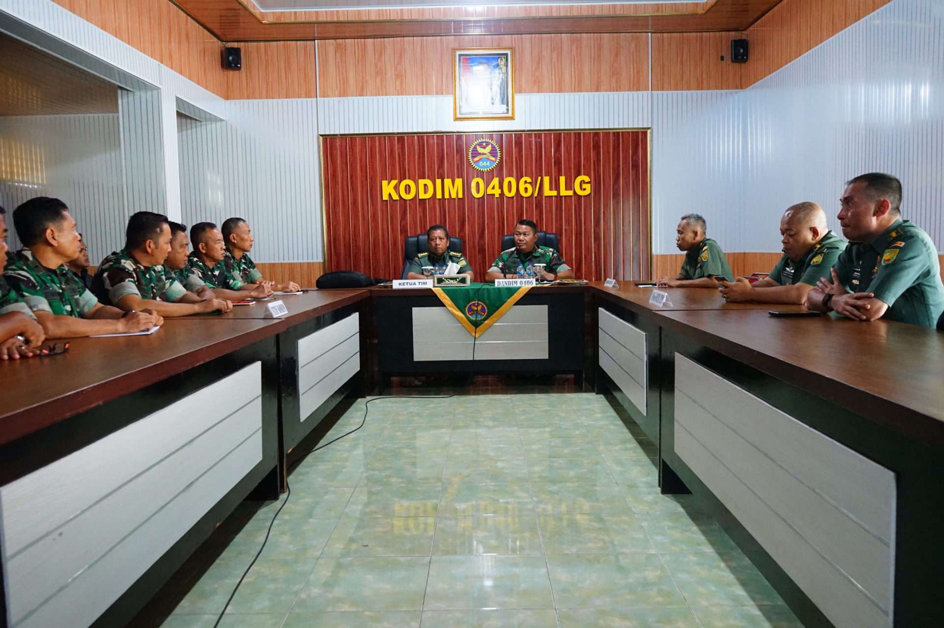 Kedatangan Tim Wasrik Itdam II/Sriwijaya disambut oleh Komandan Kodim 0406/Lubuk Linggau, Letkol Inf Arie Prasatyo Widyo Broto S.E beserta Kepala Staf Kodim, dan Perwira Staf Kodim 0406 Lubuk Linggau di Kantor Kodim 0406 Lubuk Linggau.