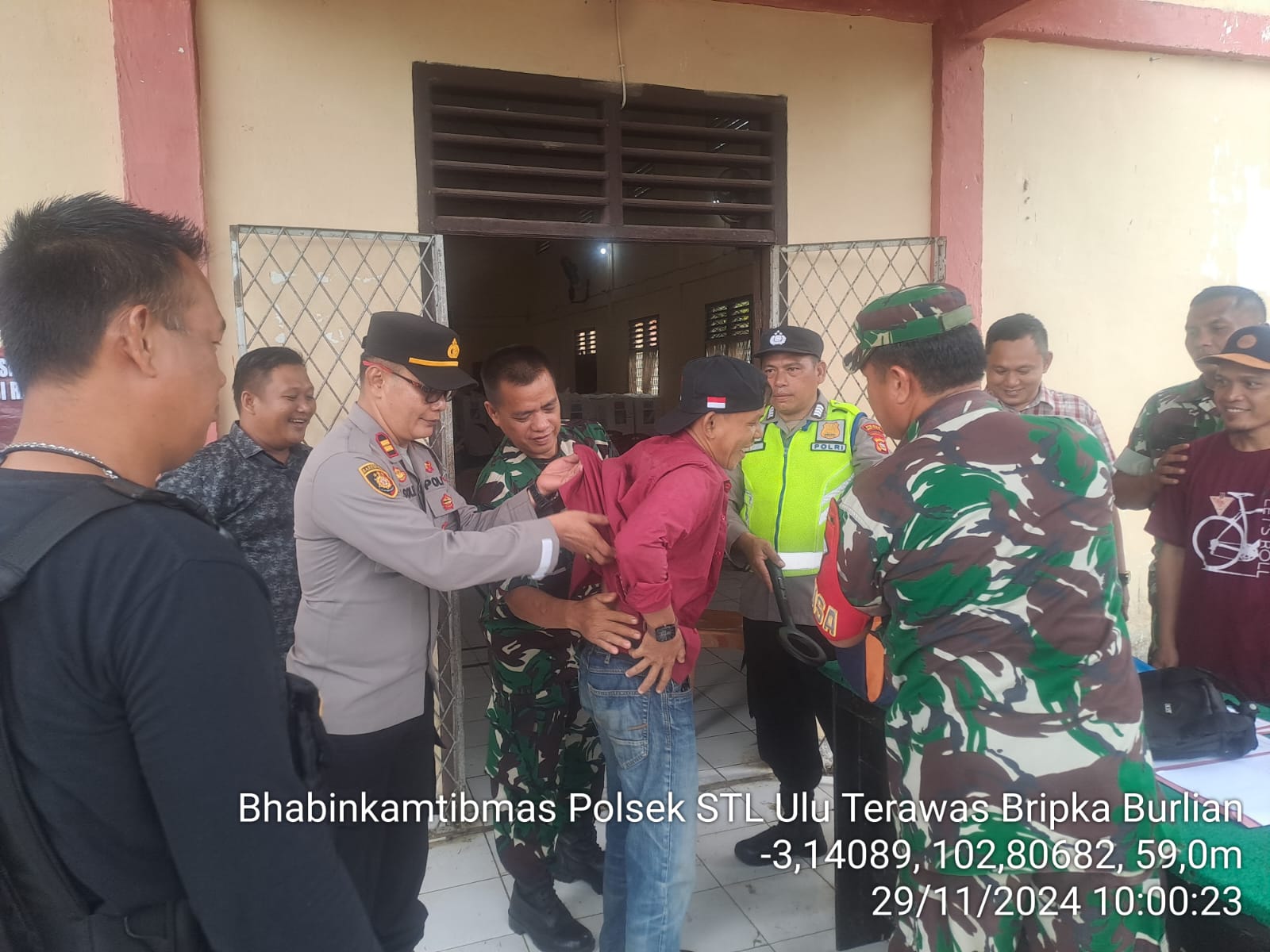 Lensa Garuda – Musi Rawas Babinsa Koramil 406-09/Terawas, Serka Yefri Sani, melaksanakan tugas pengamanan dan pemeriksaan menjelang dimulainya Rapat Pleno di Gedung Serba Guna, Kantor Camat Kecamatan Selangit, Kabupaten Musi Rawas.