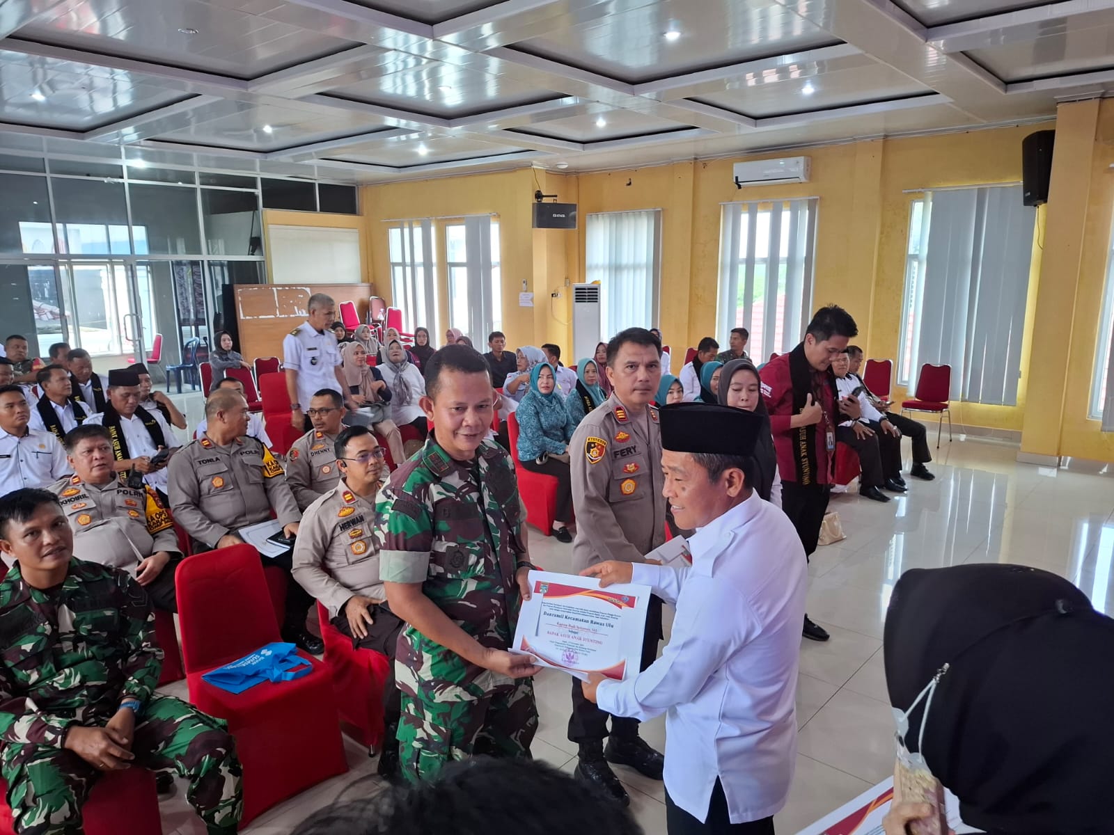 Danramil 406-01/Rawas Ulu, Kapten Inf Budi Setiawan, menghadiri acara Rapat Koordinasi Terkait Tim Percepatan Penurunan Stunting (TPPS) Tingkat Kabupaten Musi Rawas Utara sekaligus peluncuran program Bapak/Bunda Asuh Anak Stunting (BAAS) Tahun 2024. Acara ini bertujuan untuk mempercepat upaya penurunan angka stunting di wilayah Musi Rawas Utara. Rabu (04/12/2024)
